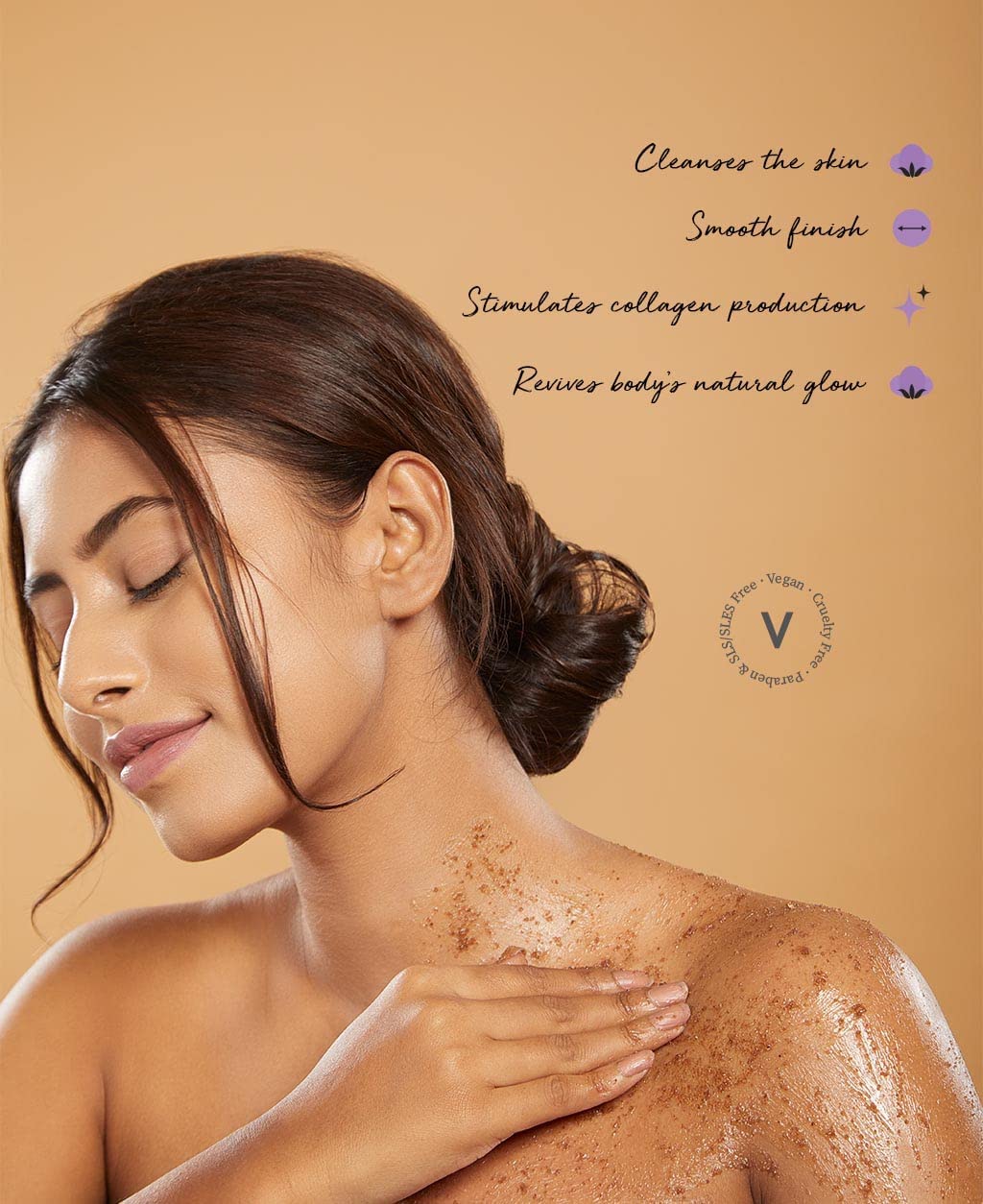 1. Splash a little water on your face. 2. Pump a pea-sized drop of Silken Body Polisher into your palm. 3. Work it into a light foam, then vibe-massage it over your face for about 60 seconds. 4. Rinse, pat dry, glow on. Use AM + PM for best vibes.