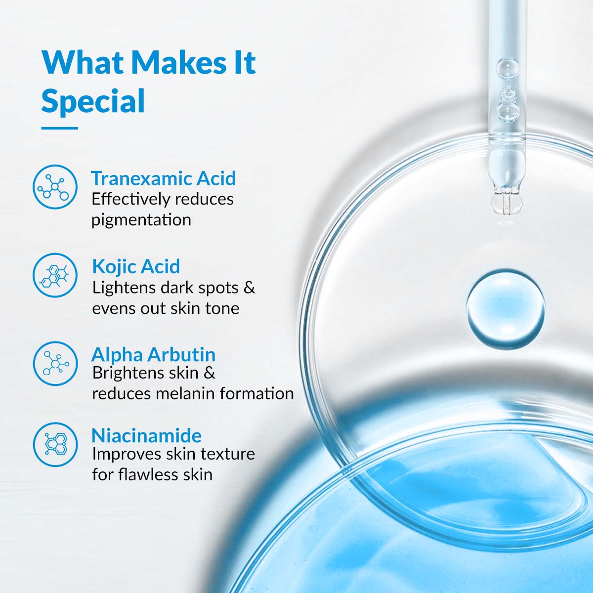 - Tranexamic Acid, Kojic Acid, Alpha Arbutin, Niacinamide