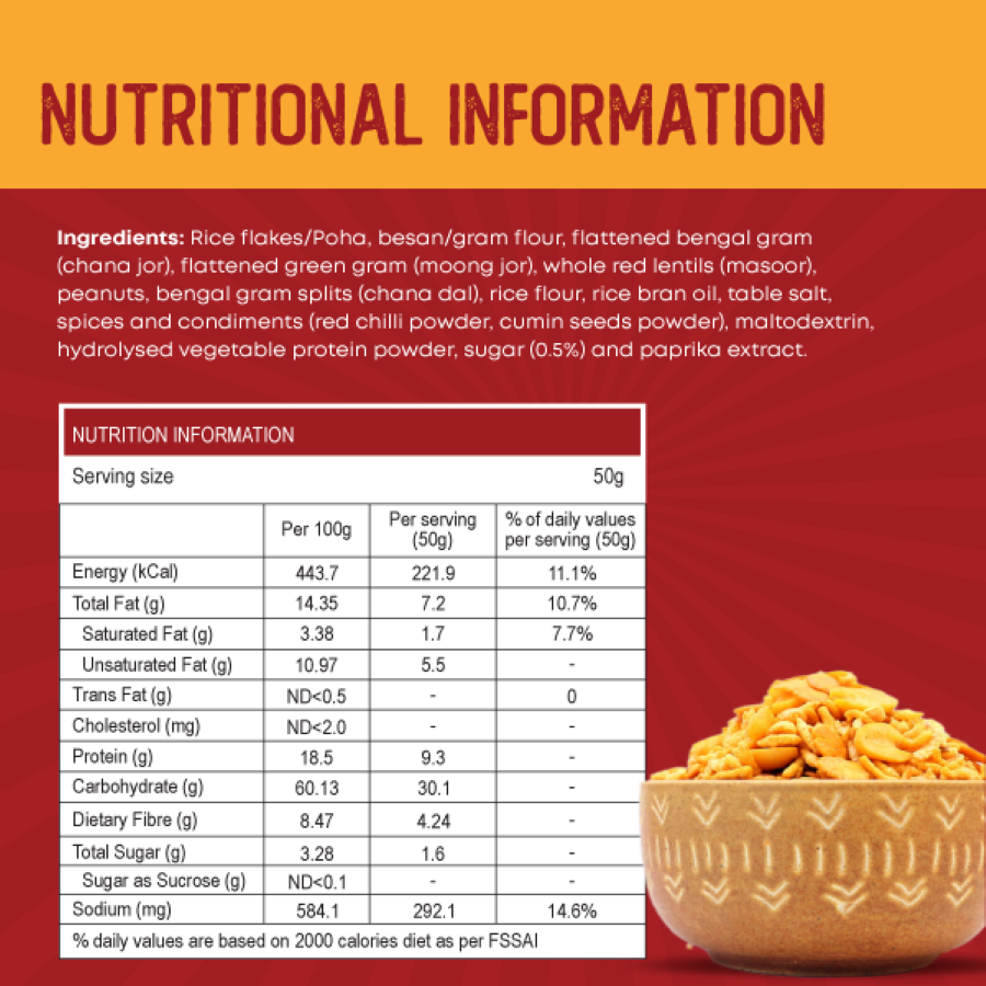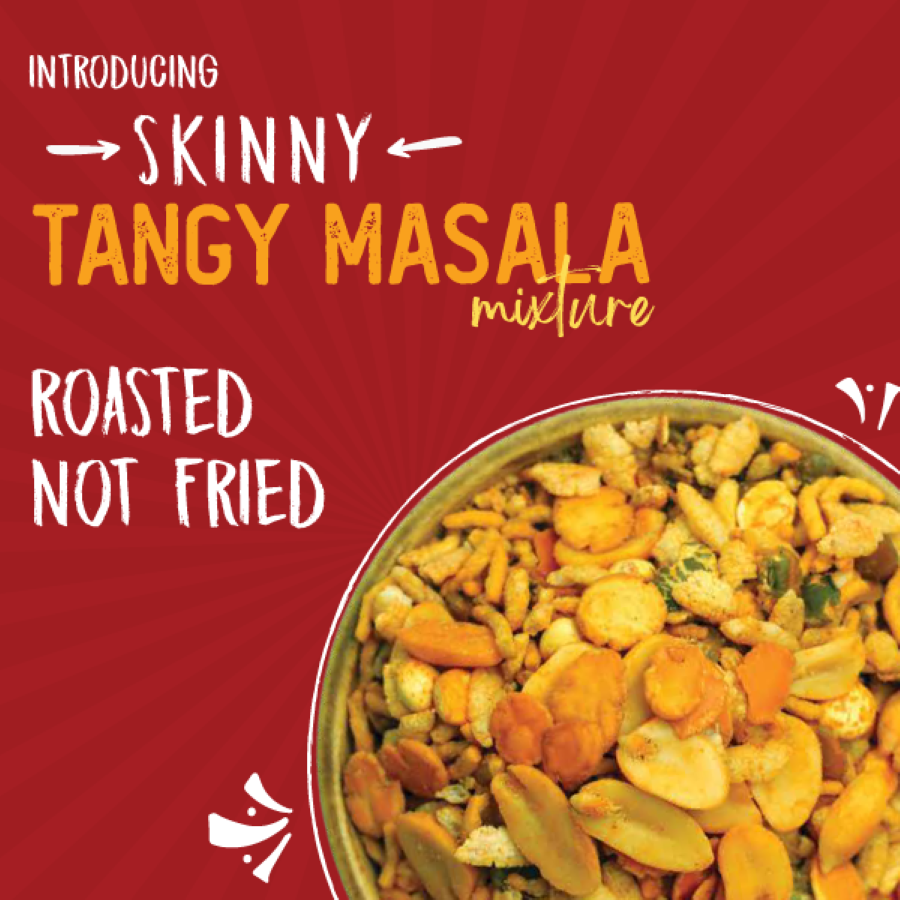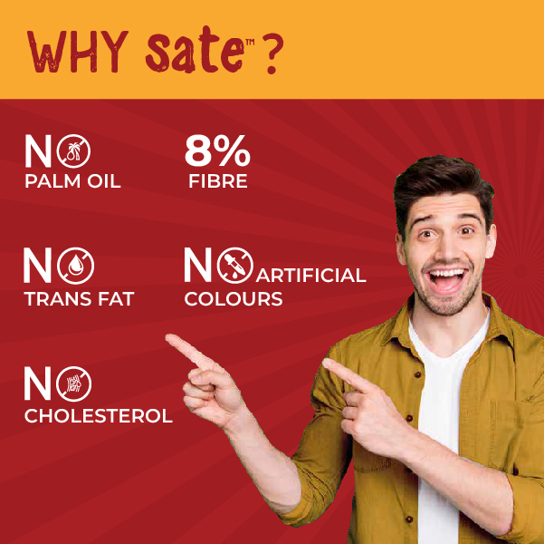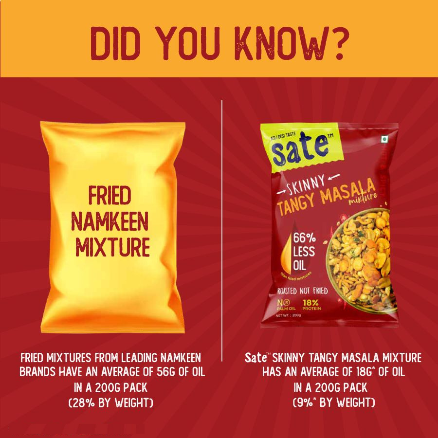 SATE Skinny -The tasty Tangy Masala Mixture with 66% Less Oil, 18g protein & 8g dietary fibre (in every 100g of mixture). No Palm Oil. No Artificial Preservatives/Colours. Trans-Fat & Cholesterol Free