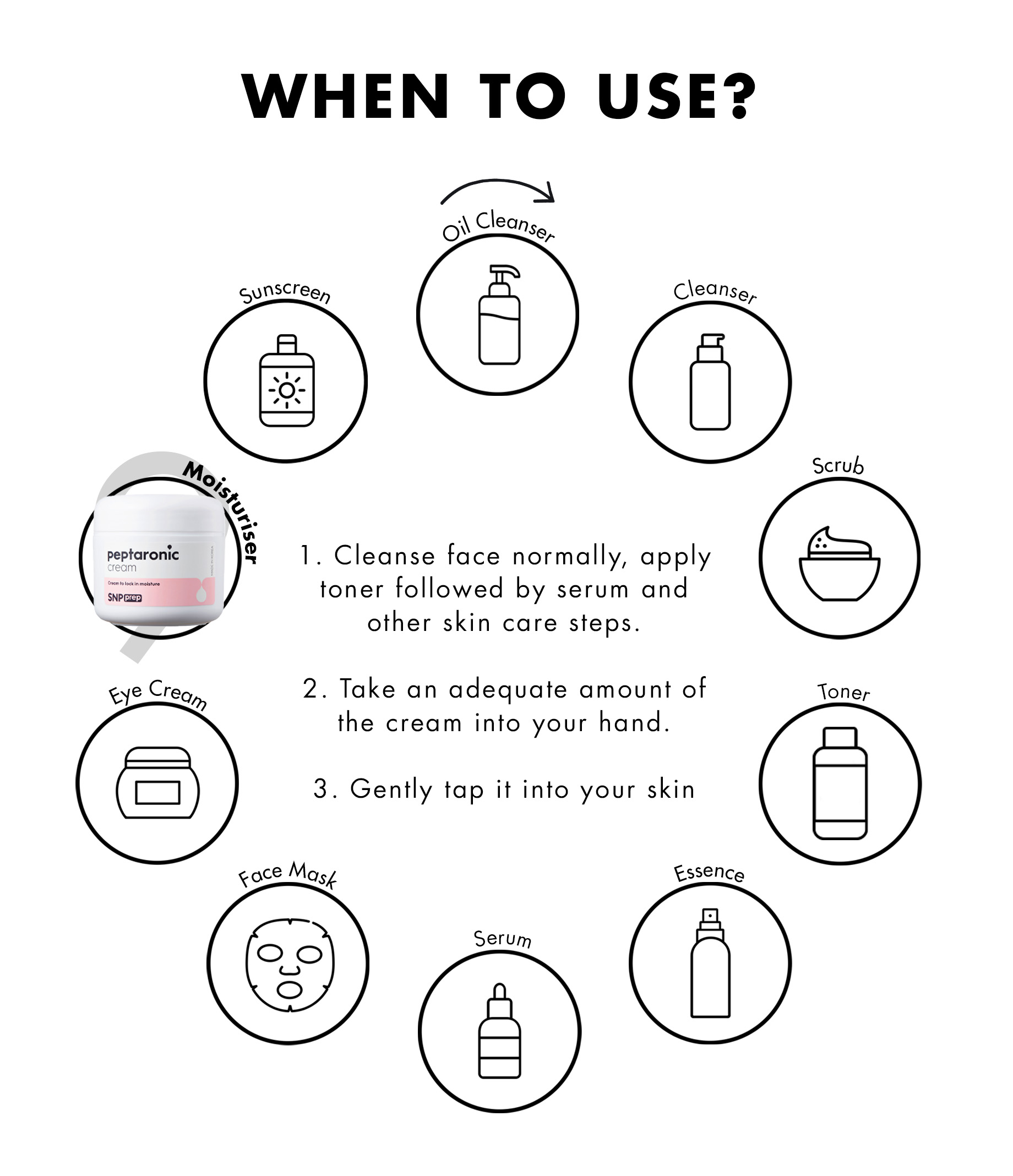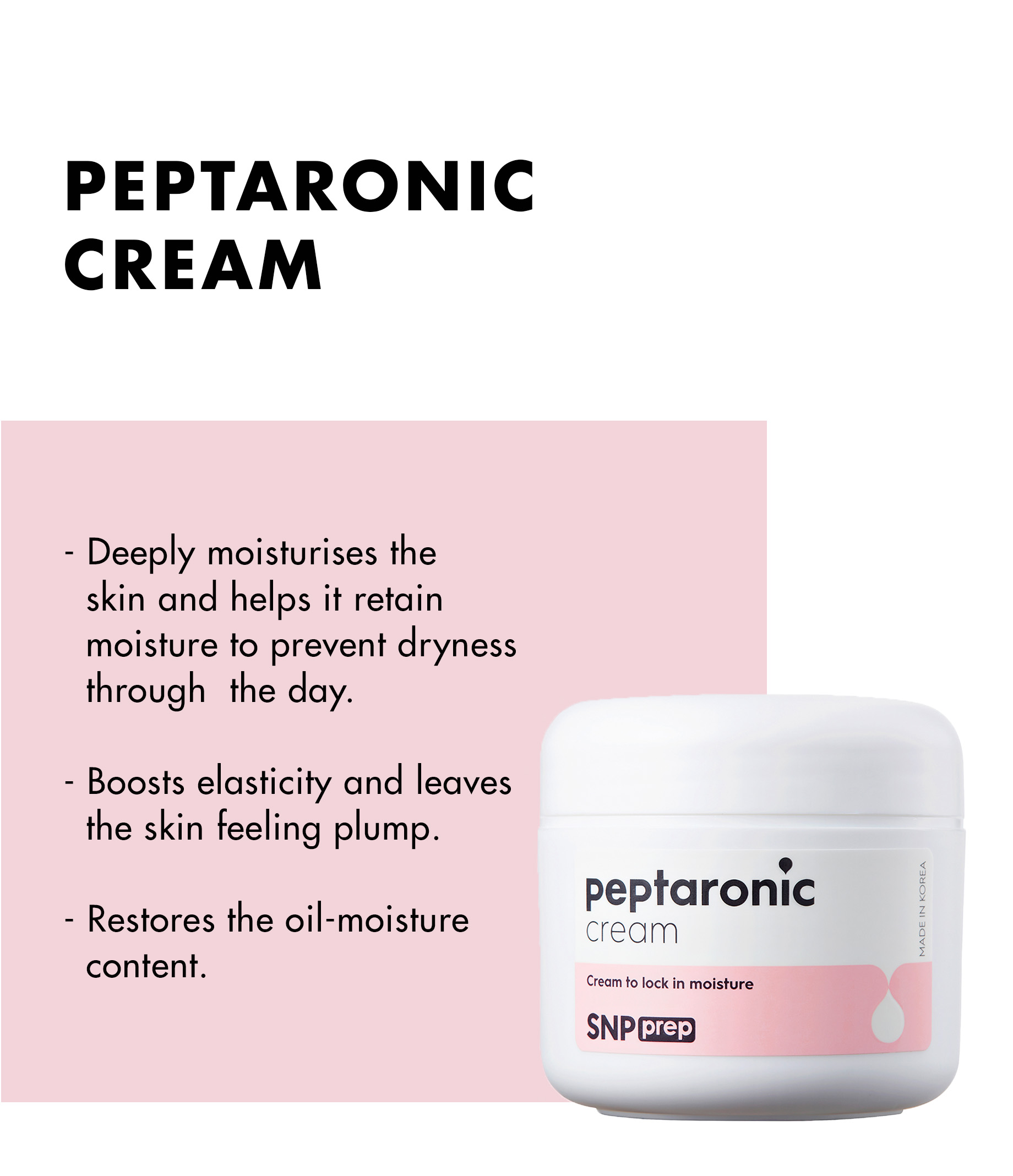 The SNP PREP Peptaronic Cream provides sufficient moisture and maintains the skin's oil and moisture balance.