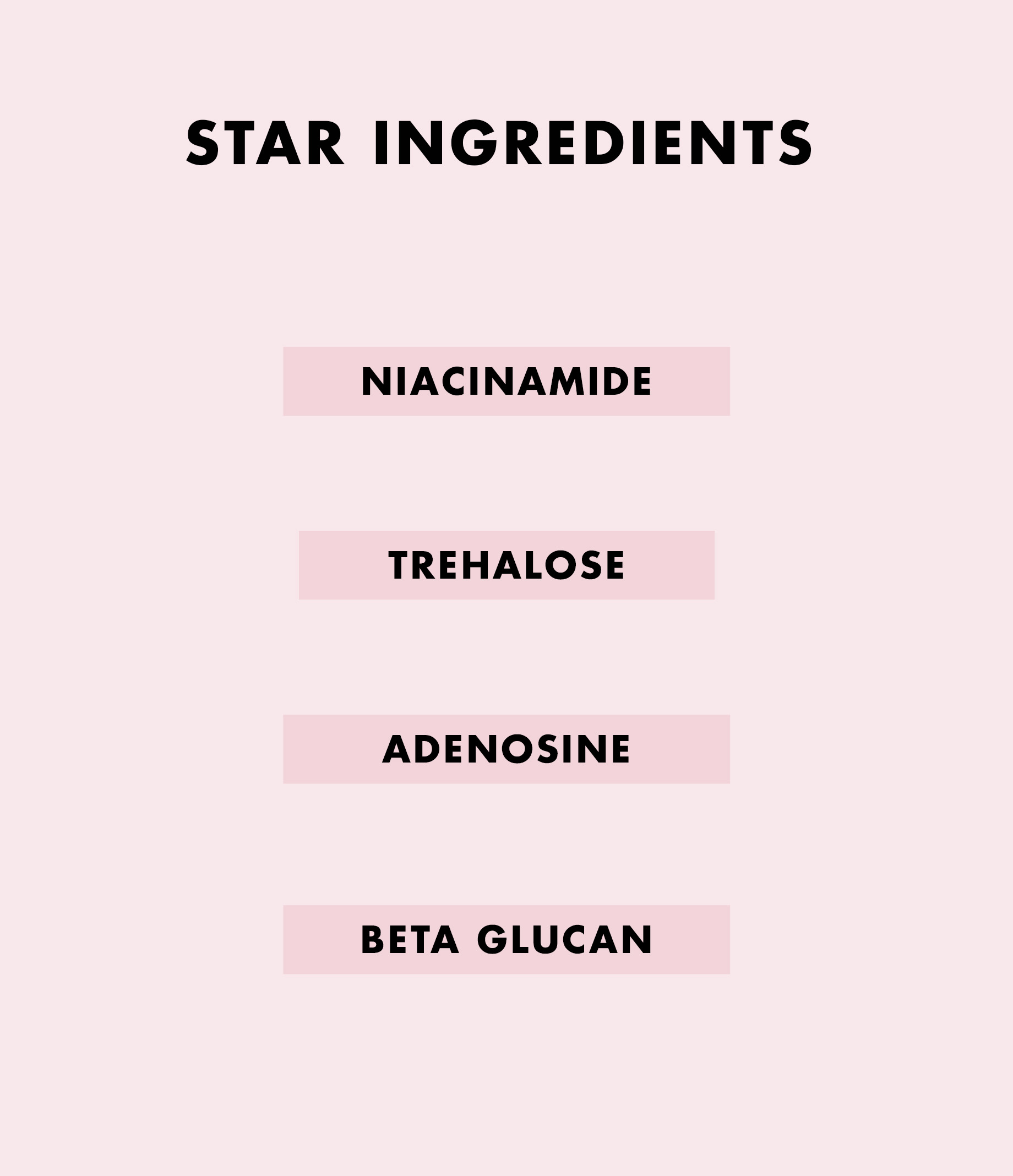 Water, Glycerin, Caprylic/Capric Triglyceride, Dipropylene Glycol, Cetyl Ethylhexanoate, Niacinamide, Cetyl Alcohol, Palmitic Acid, Glyceryl Stearate, Stearic Acid, Ethylhexylglycerin, Carbomer, Polysorbate 60, Arginine, Trehalose, Hydroxyacetophenone, Ch