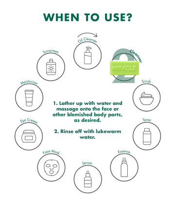 1. Lather up with water and massage onto the face or other blemished body parts, as desired 2. Rinse off with lukewarm water.