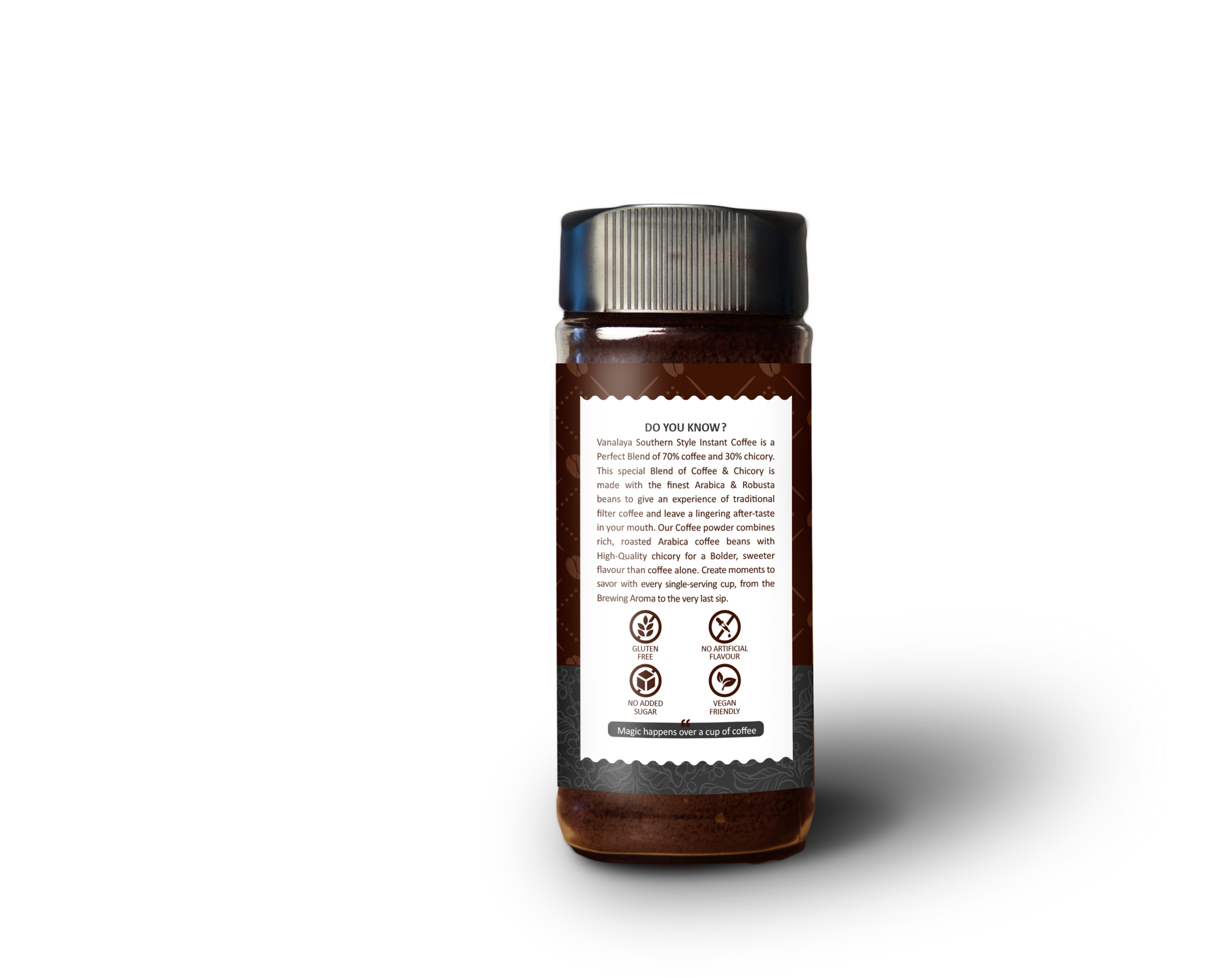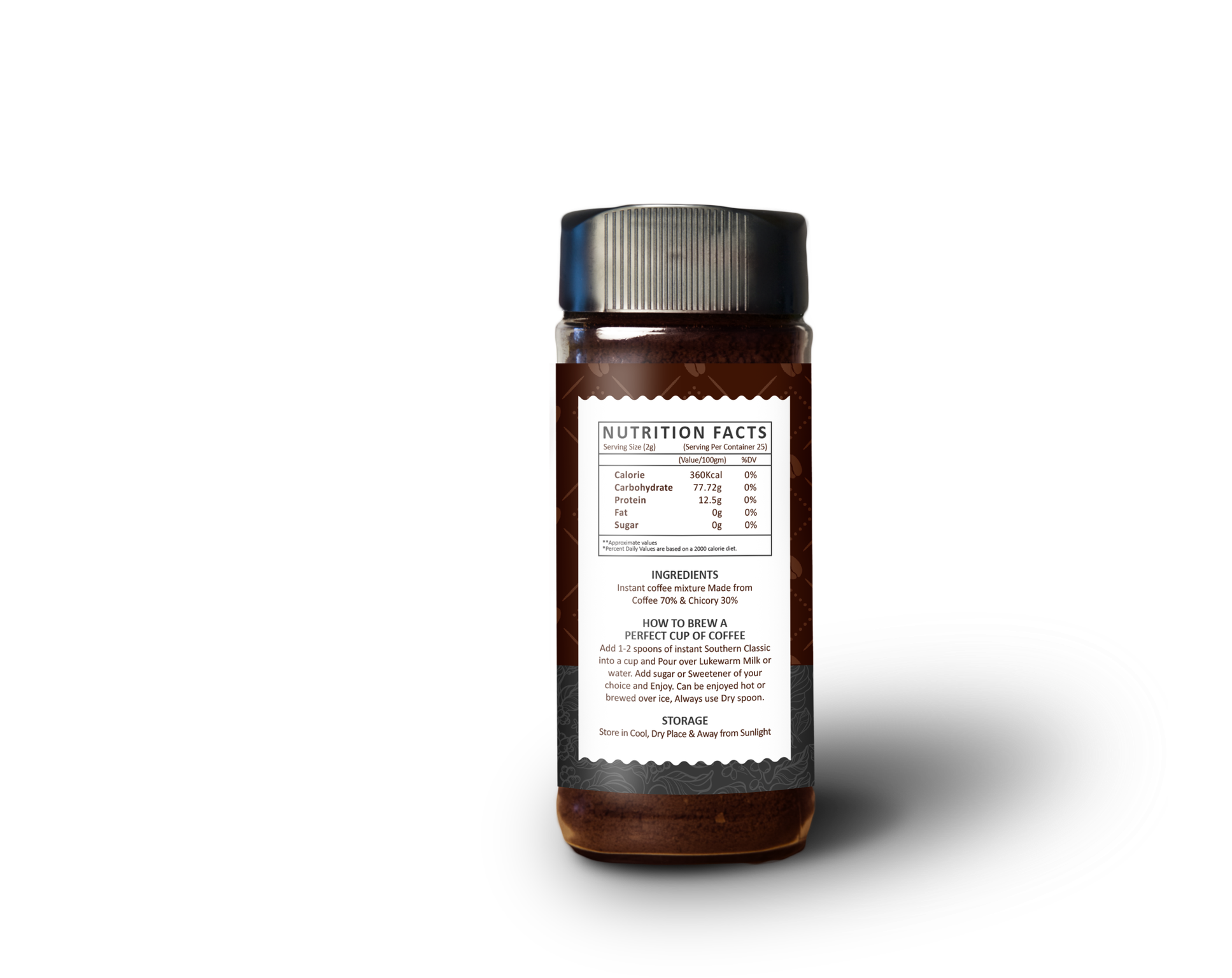 It is a perfect blend of 70% coffee and 30% chicory. Made with the finest arabica and robusta beans, it gives an experience of traditional filter coffee, leaving a lingering after-taste in your mouth. Enriched with chicory and black coffee powder this coffee has a super-rich aroma, tastes good and is an ideal drink for weight loss and stress relief.