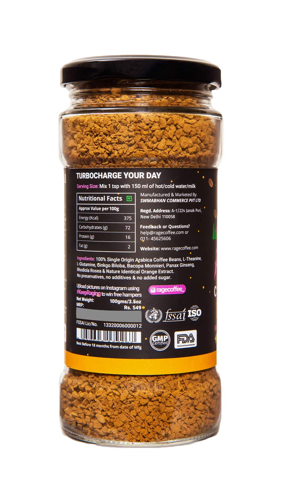 Rage Coffee Sparky Orange Flavour - Premium Arabica Instant Coffee - 100gm