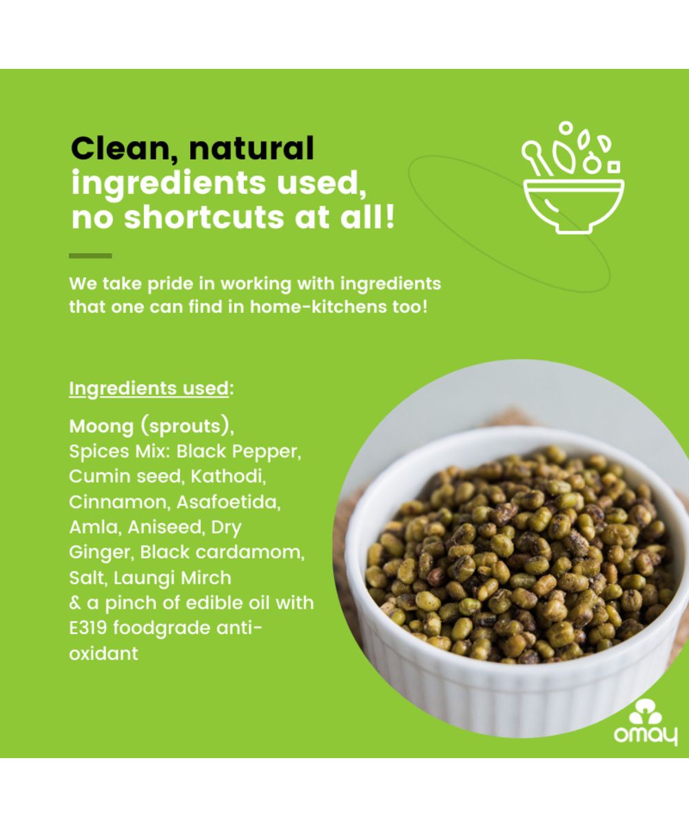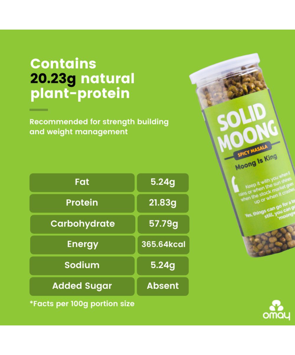Roasted Solid Moong: Keep it with you when it rains or when the sun shines, when the stock market goes up or when it crashes. Yes, things can go for a toss; still, you can go for moong-walk! It is a 100% roasted, non-fried healthy snack.Benefits: