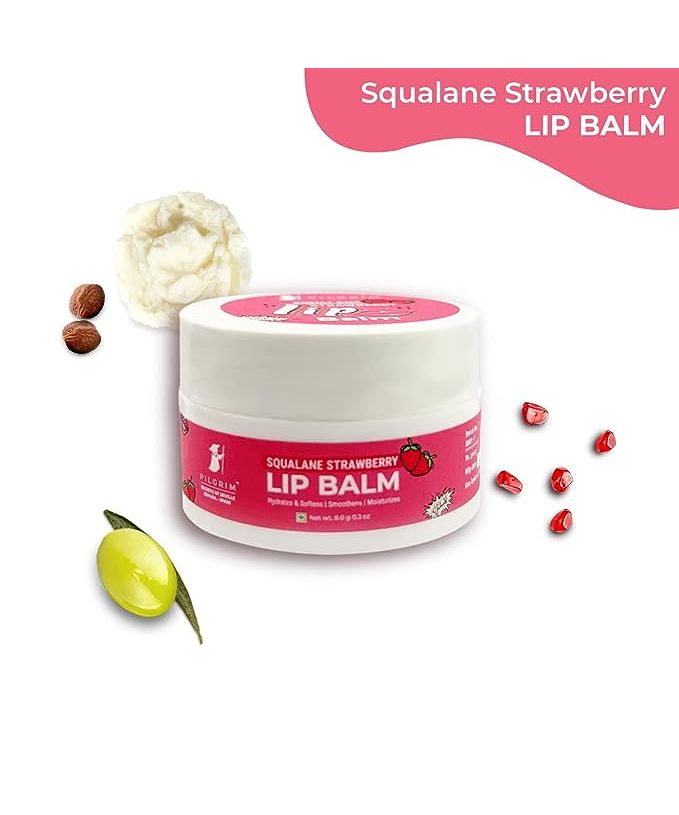 Pilgrim Squalane Strawberry Lip Balm, enriched with Vitamin E-rich Shea and Cocoa butter, is a must-have for soft, nourished lips. The meltingly textured lip balm helps smoothen chapped, dry or cracked lips and nourishes intensely. Squalane along with the rich plant-derived butters replenish the moisture and lock it in, delivering long-lasting hydration. This unique skincare blend forms a protective layer, keeping lips nice and plump. Squalane Lip Balm with Shea and Cocoa Butter meets all your lip needs!