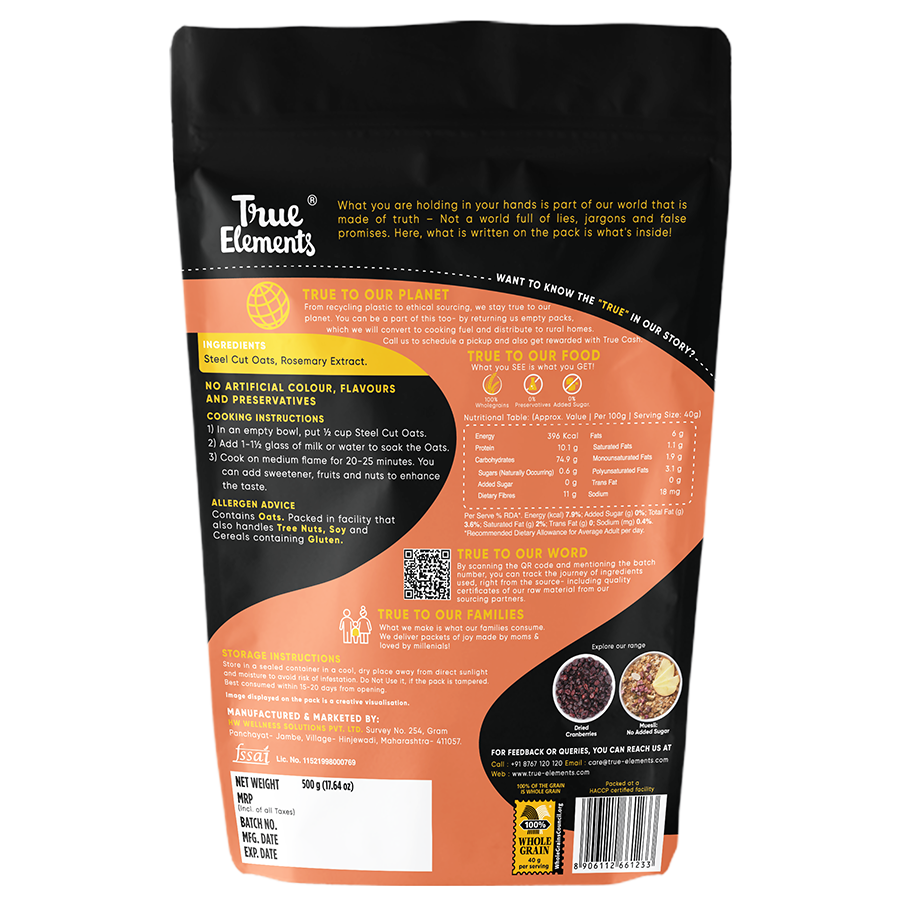 True Elements Steel Cut Oats are unique quality oats which are different from the rolled oats. They are not rolled or ordinary unlike other but are steel cut into groats, thus decreasing your cooking time. Being naturally gluten-free, just like rolled oats, they can be helpful in improving the health of Celiac patients.