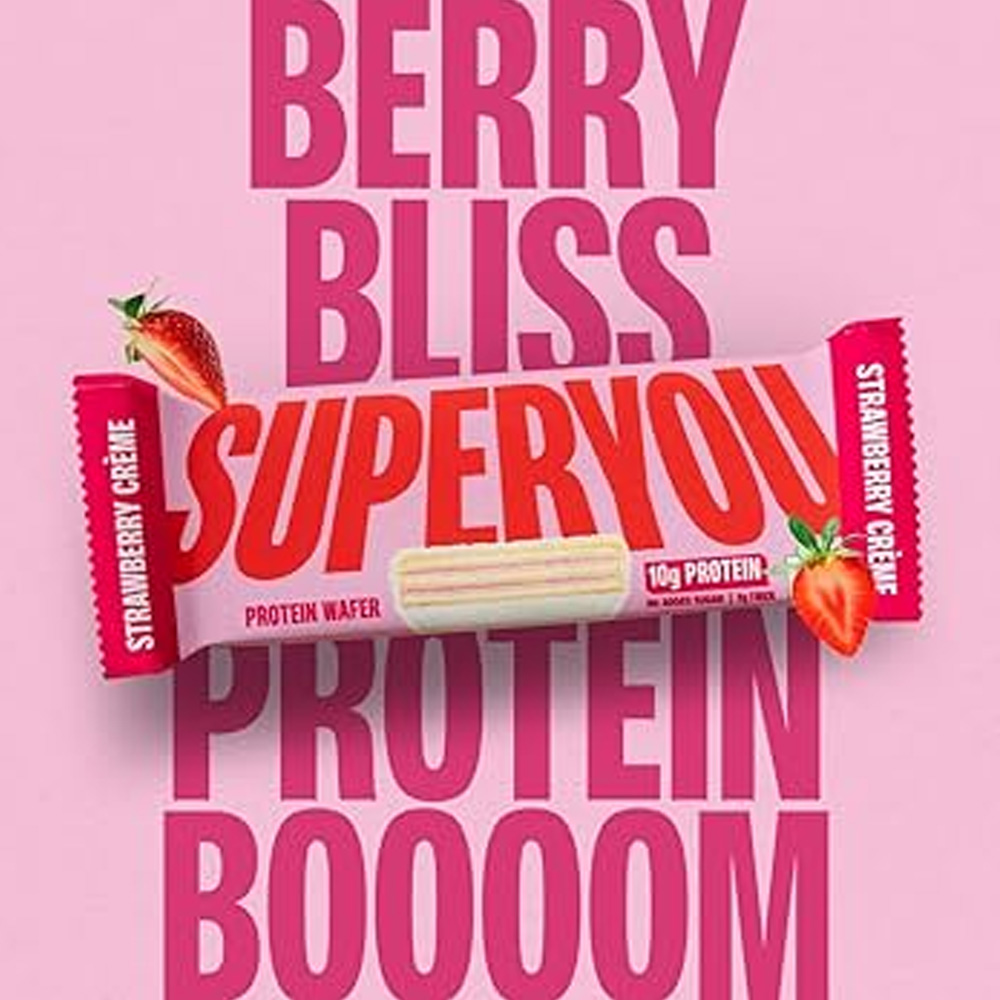 A fruity delight in every bite!Crunchy layers with a sweet strawberry twist.