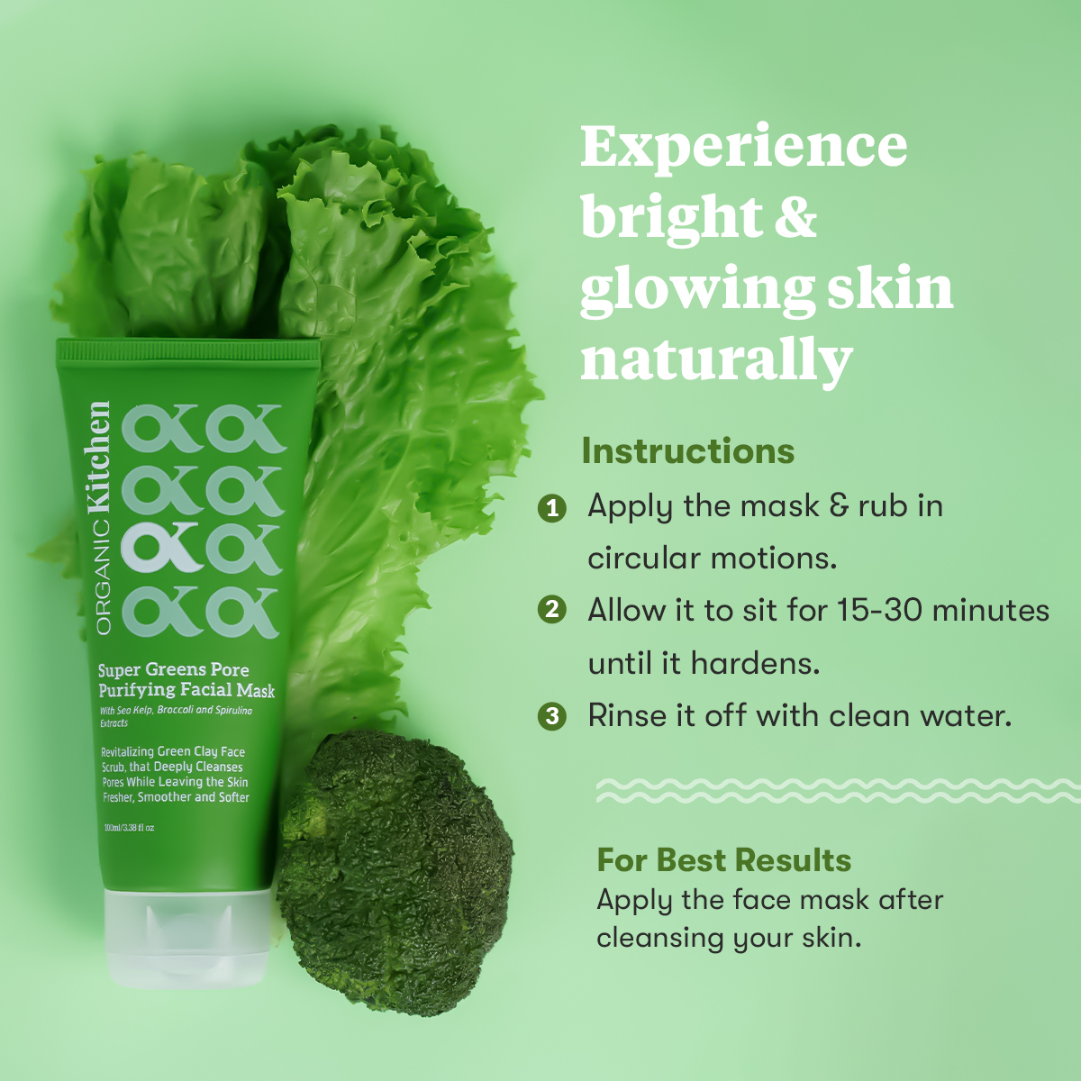 SuperGreen Pore Purifying Facial Mask is a powerful clasrifying face mask infused with a unique blend of detoxifying and nourishing actives to calm and clear congested skin, without dry it out. A super-light and non-greasy mask ideal for those with oily skin, congested, blackheads, stressed skin or acne-pore skin. This Super Greens infused face mask helps bring stressed-out skin back into balance. From congestion to redness, it uses purifying ingredients such as kaolin clay and spirulina to gently cleanse pores and calm skin.