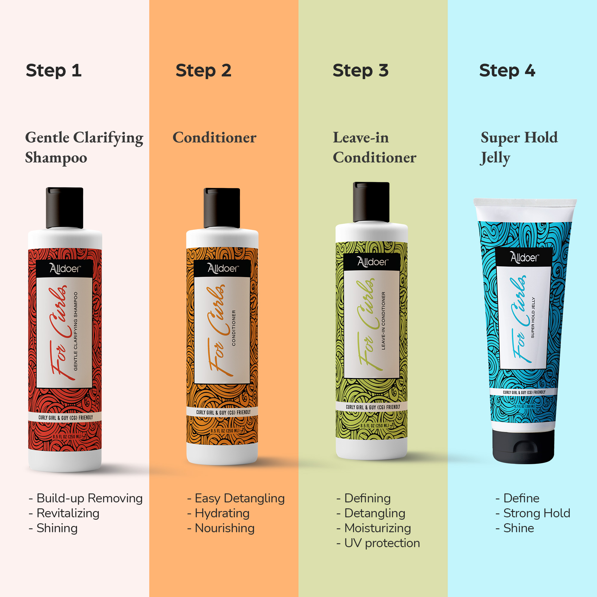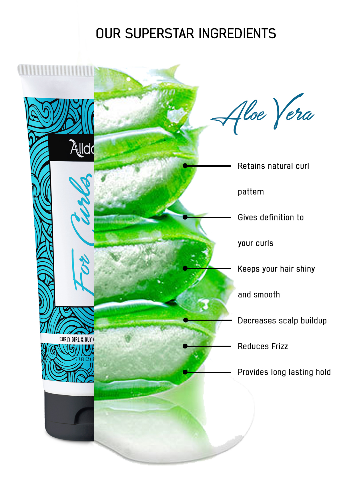 Alldoer product is packed with the essential nutrients of Aloe Vera which strengthens and adds shine to your hair for beautifully defined curls. It has fast drying action, so your curls are well-defined and longer-lasting in no time. For best results, use with wet hair.