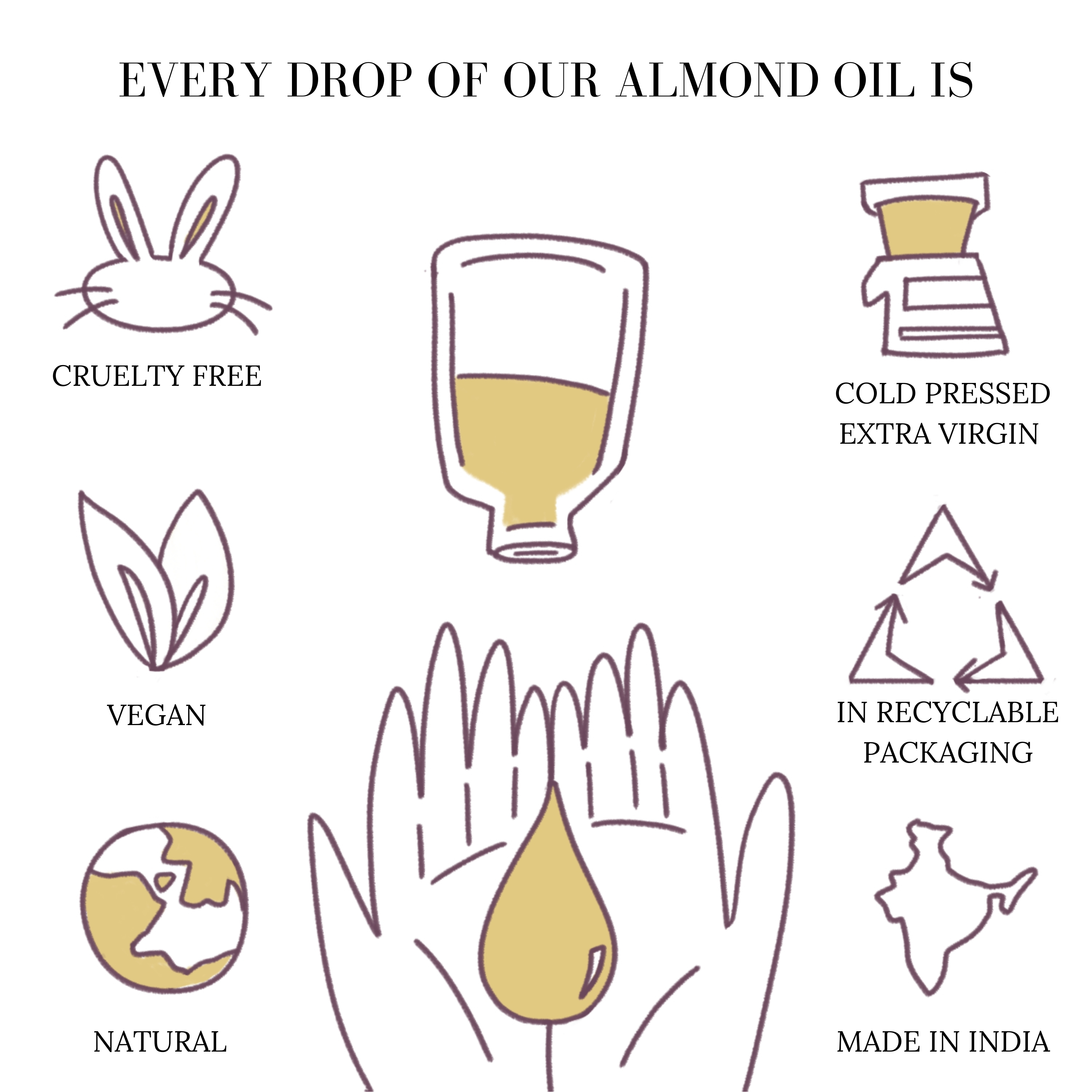 This product is filled with the goodness of Almonds and is perfect for baking, making desserts as well as a base for dressings & marinades. Our Almonds are sourced directly from Kashmir and are extremely rich in Vitamin E and Vitamin D, essential for skincare /massage oil. It helps reduce cholesterol. Monounsaturated oils used as dressings on salads and fruits increase the amount of goodness absorbed. The cold extraction preserves all the natural goodness of raw, unroasted almonds. Contains no trans fats, additives, preservatives, or artificial ingredients.