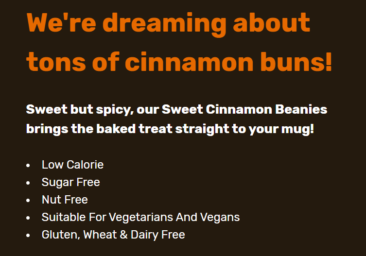Weve made a flavour coffee to suit every moment. Because sometimes its a super Sticky Toffee kinda day. And others its a cheeky Cherry Chocolate kinda day. You name it, weve got the full-on, all-out flavour to go with it. Everyone is full to the brim with the biggest, boldest, most delicious-est tastes you can imagine. And theyre sugar-free and low in calories too, so its guilt-free indulgence all the way. Whatever the occasion, weve got the flavour to match. From the moment the jar is popped open and releases the aroma, to the very last sip, we make sure that the experience is full-on and ultimately satisfying.