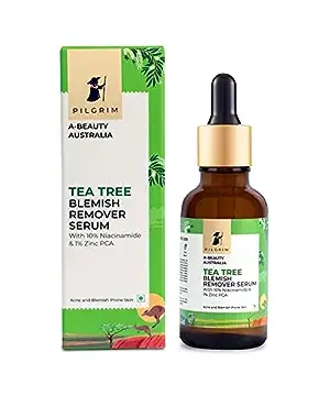 The Tea Tree & 10% Niacinamide Blemish Remover Serum with 1% Zinc PCA is a potent formulation to diminish blemishes and acne marks. Super skincare ingredient 10% Niacinamide (a derivative of vitamin B3) helps repair the skin barrier and brighten. Combined with 1% Zinc PCA and Australian tea tree, this lightweight serum helps refine pores, soothe inflammation, and regulate excess sebum production. Australian tea tree, world-renowned for its quality, cleanses the pores of dirt, grime and impurities from deep within, leaving skin purified. A perfect serum for acne and blemish-prone skin types. Say hello to blemish-free crystal clear skin!