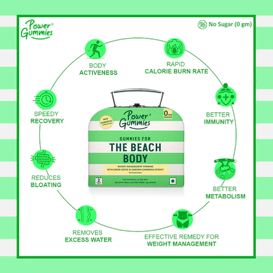 Power Gummies Weight Management Vitamins help burn fat and support in managing weight naturally to give you a total transformation! The blend of infused elements such as green coffee beans, L-carnitine and vitamin C makes these chewable gummies for the beach body rich in antioxidants. These antioxidants assist in reducing weight by burning body fat at an accelerated rate. This 1-month pack of weight management vitamins also helps in boosting metabolism, uplifting mood, preventing fatigue to provide a high energy level.
