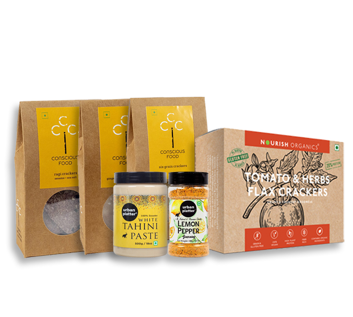 Being on a diet doesn't have to be sad anymore! We present to you the idea of snacking just the right way without ruining your fitness regime. Binge on to your favourite crispy crackers without having a guilt trip with this amazing Healthy Binge Box! This combo brings you the taste and goodness of six crackers that are not just healthy but are super tasty. What are you waiting for? Grab this hamper to snack just the right way!