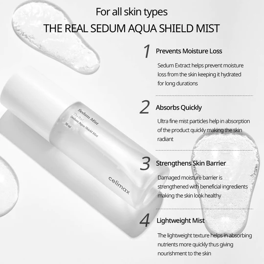 Formulated with Sedum Extract which strengthens skin barrier to prevent moisture loss. Dual Hyaluronic Acid replenishes dry skin with intense hydration. A combination of Xylitol, a moisturizer derived from birch trees, enhances moisture level by optimizing the absorption of hydrating elements. Ultra-fine mist particles deliver quick replenishment leaving the skin fresh and radiant.