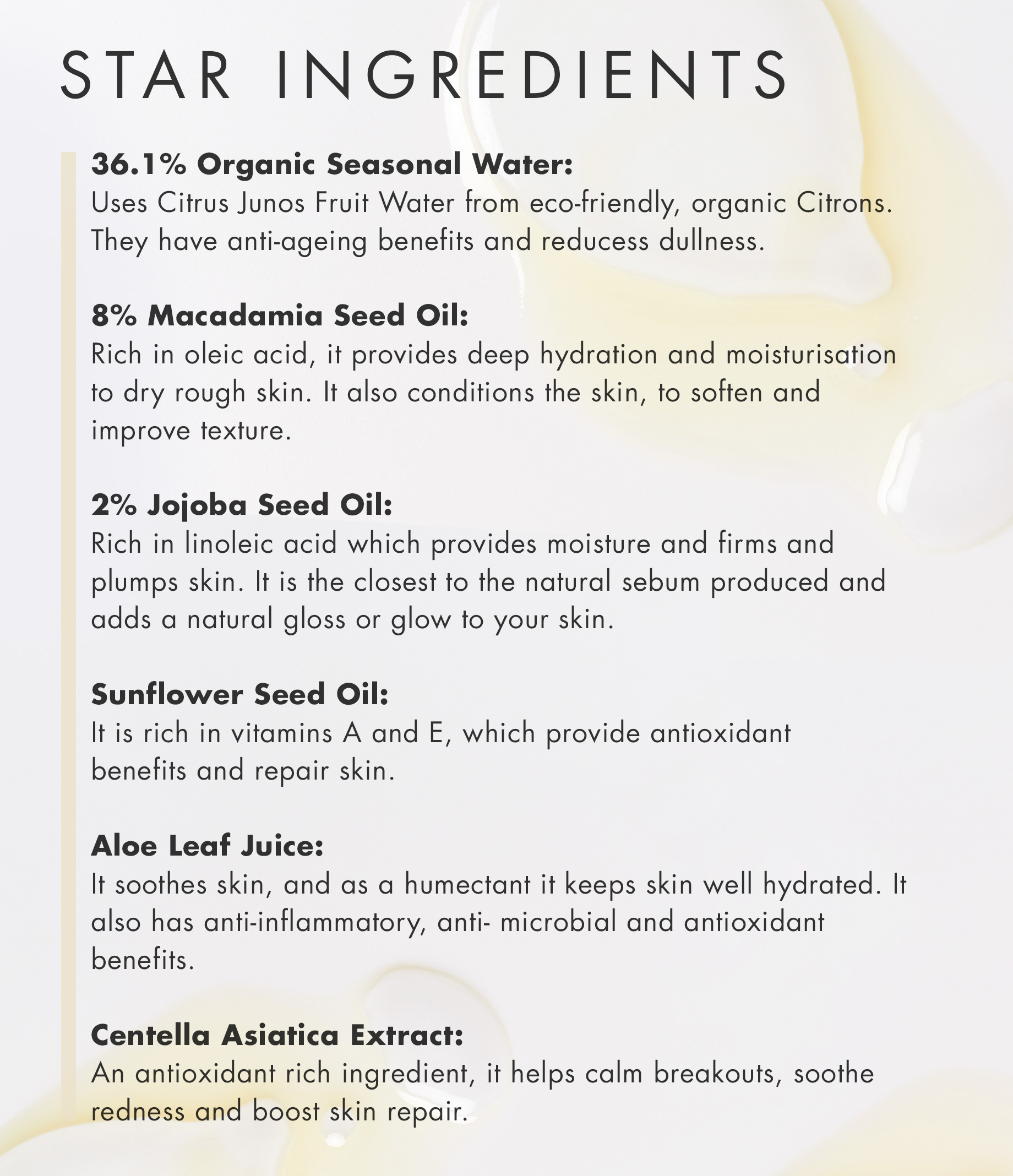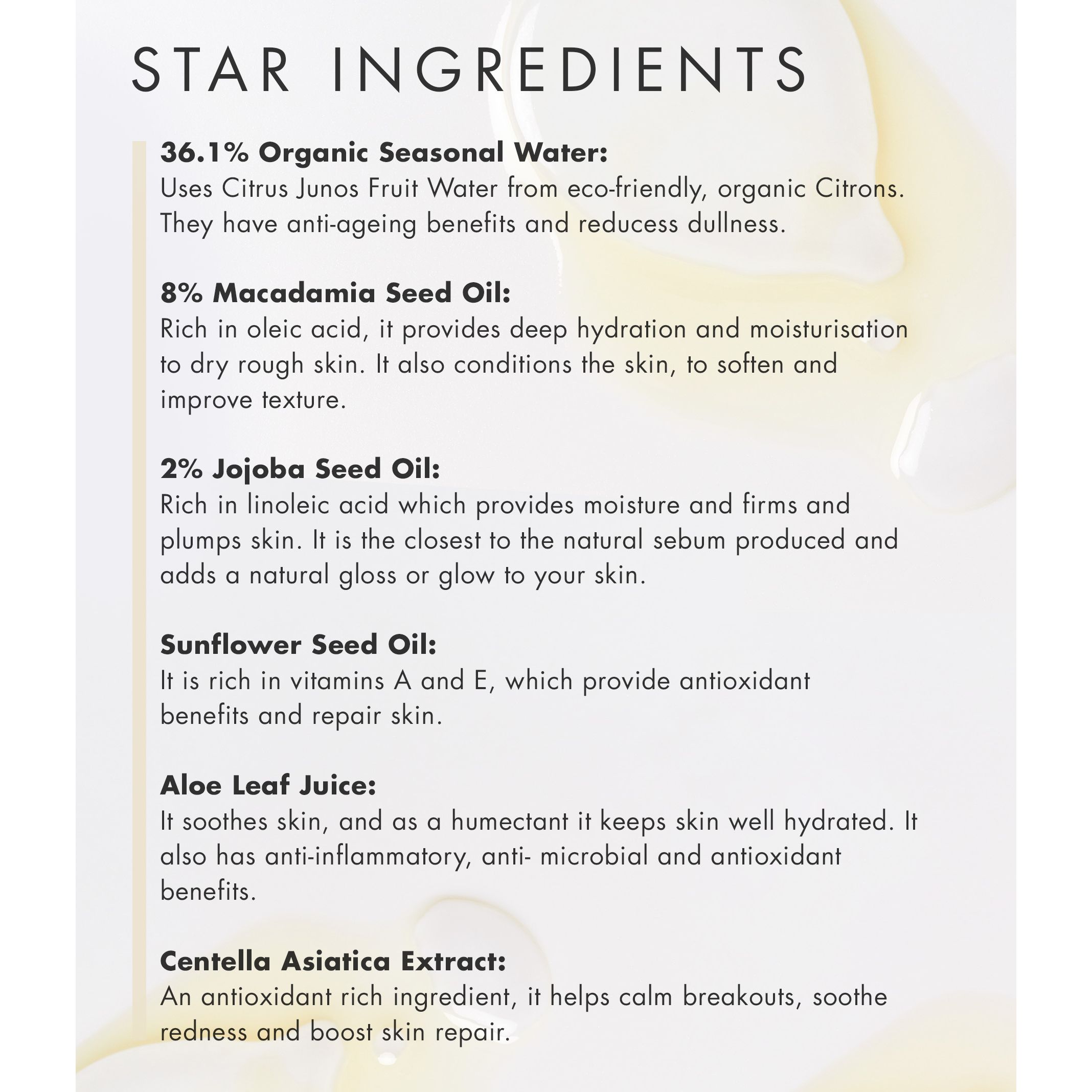A 3-in-1 multipurpose item that works as a toner, mist and serum oil. The mist uses 3 types of oil to provide deep moisturisation and smooth dry or rough skin. It is a biphasic (oil-water) mist with a watery, non-greasy texture. This Cosmos Organic Certified toner is perfect for those with dry, normal and sensitive skin, or who prefer a minimal routine.