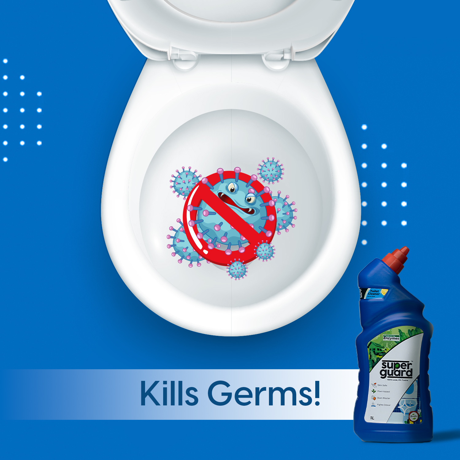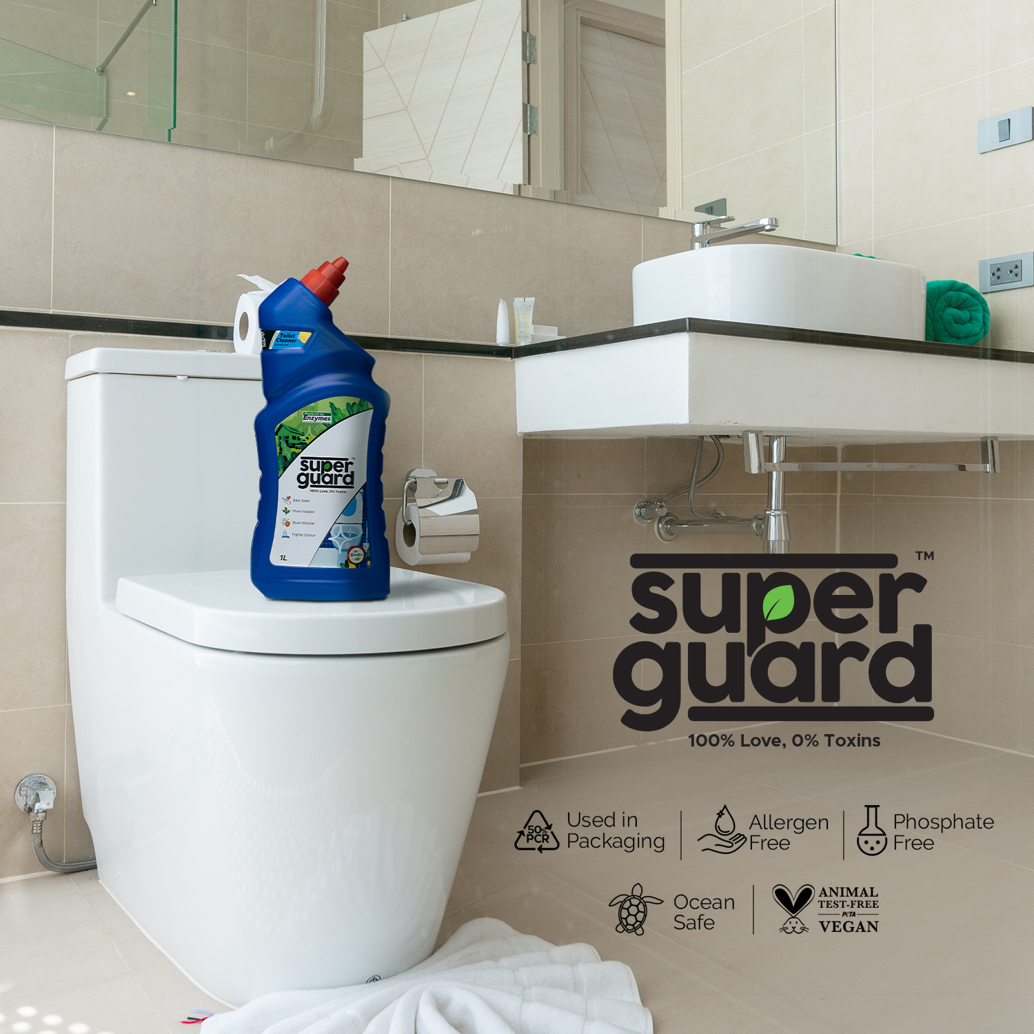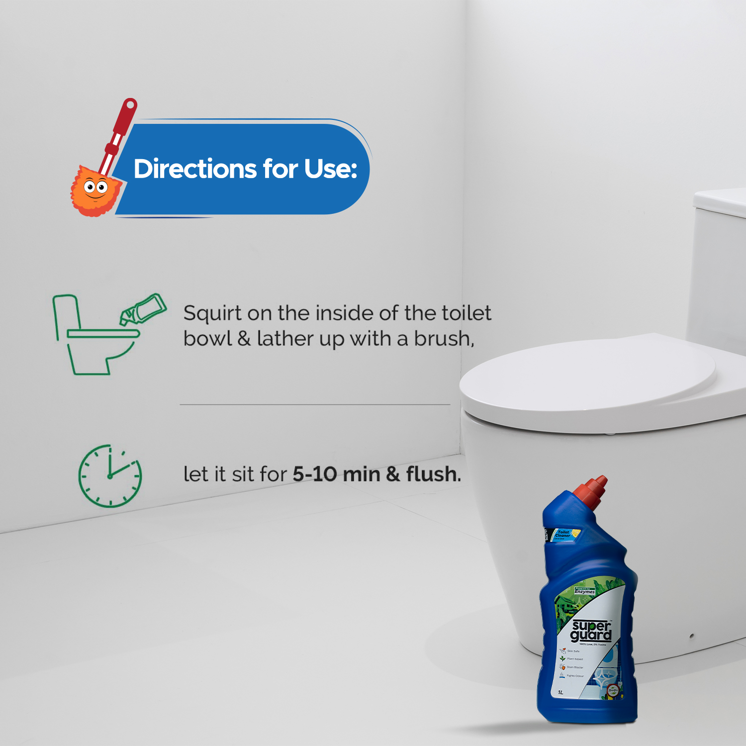 Toilet Cleaner liquid cleans and sanitizes toilet bowls, bathroom sinks and bath-tubs to give it a fresh, sparkling clean finish and keeps the toilet germ free.