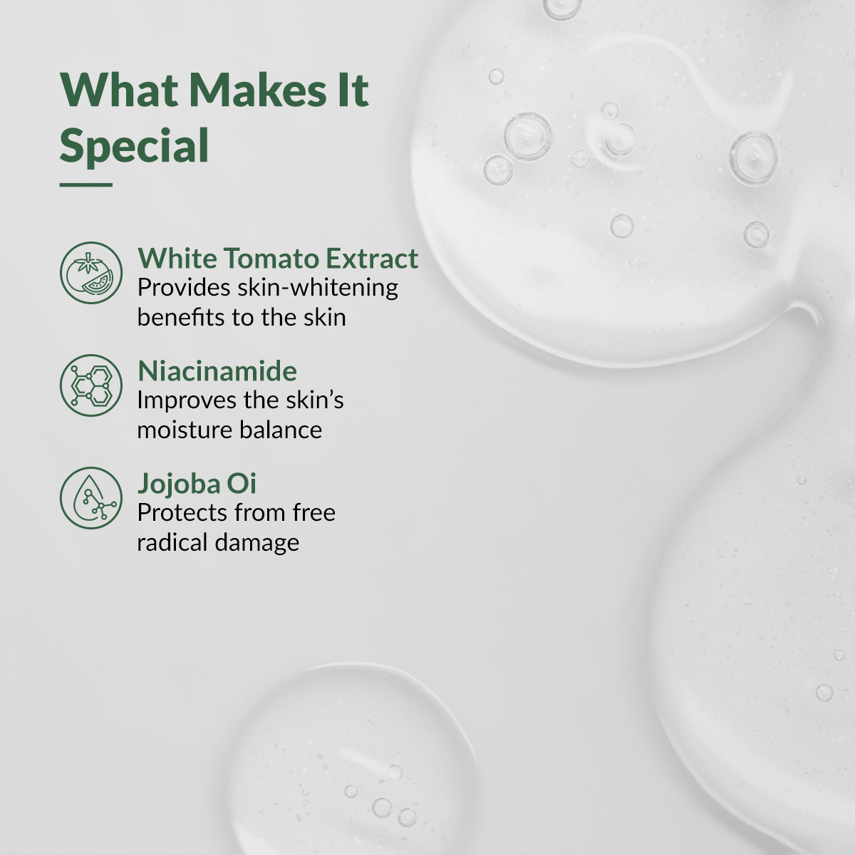 - Niacinamide,White Tomato Extract,Jojoba Oil