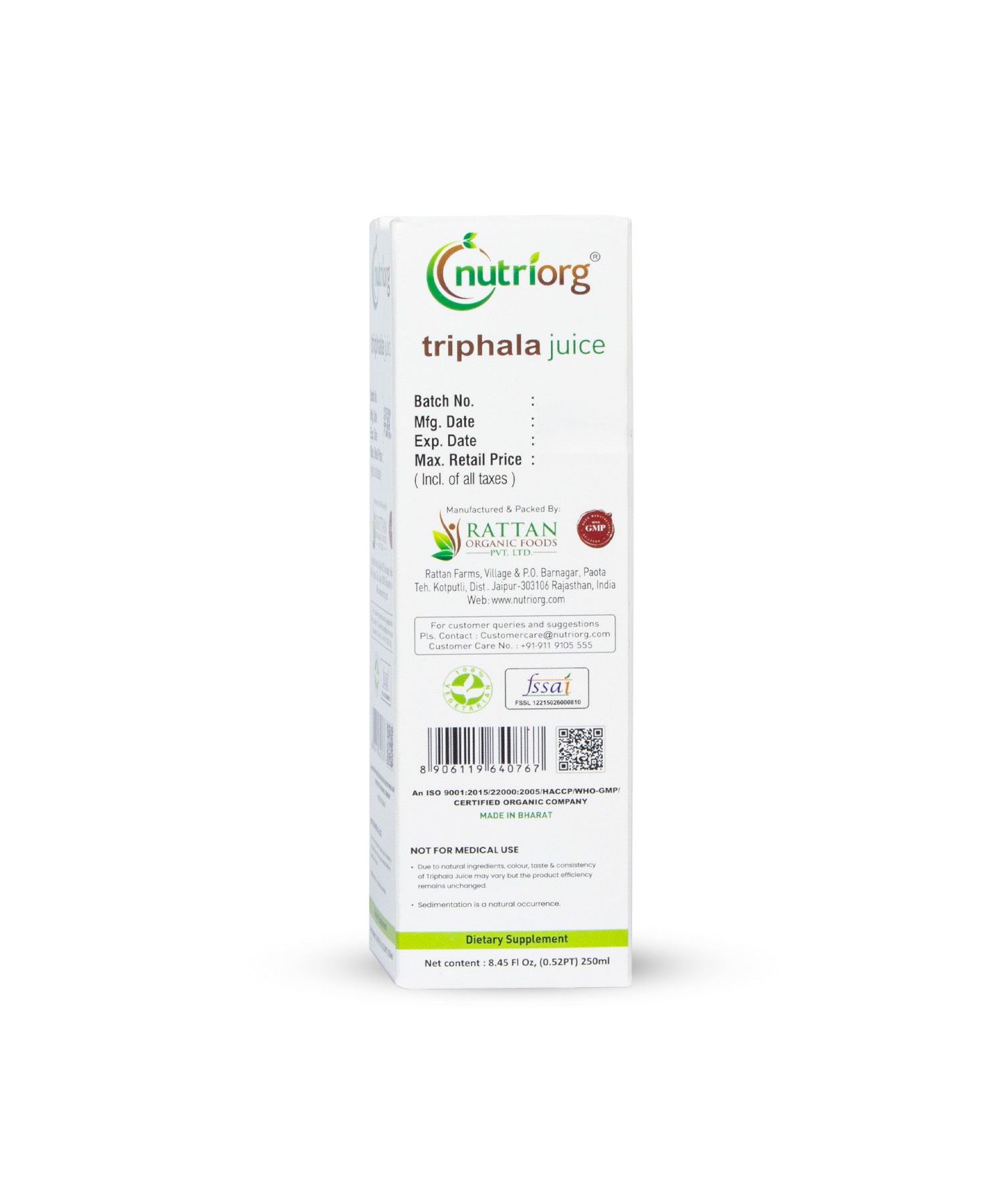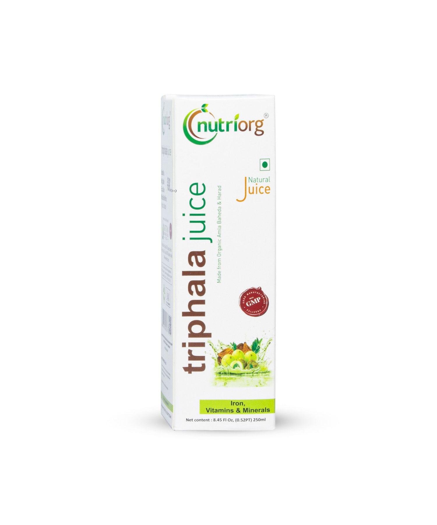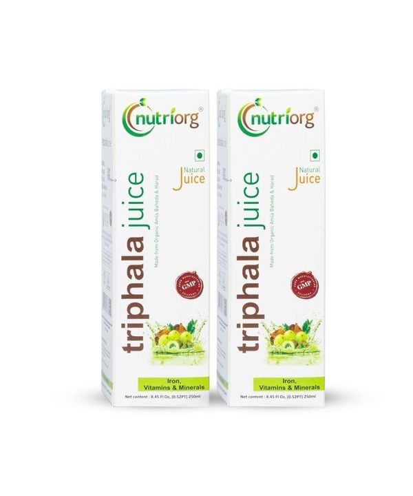 Mix 15-20 ml of Nutriorg Thriphala Juice in 200 ml of lukewarm water in a non-metallic pot and consume empty stomach twice a day preferably morning and evening.