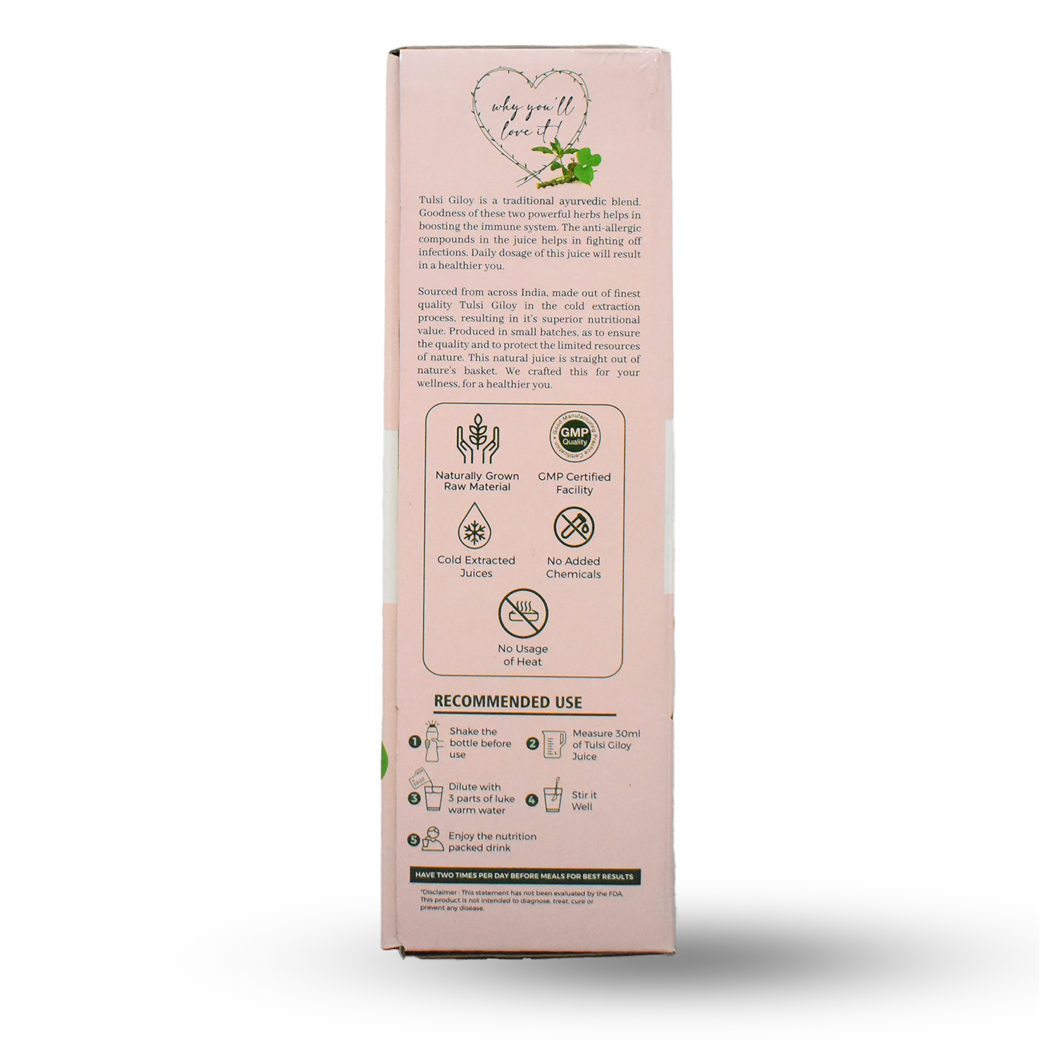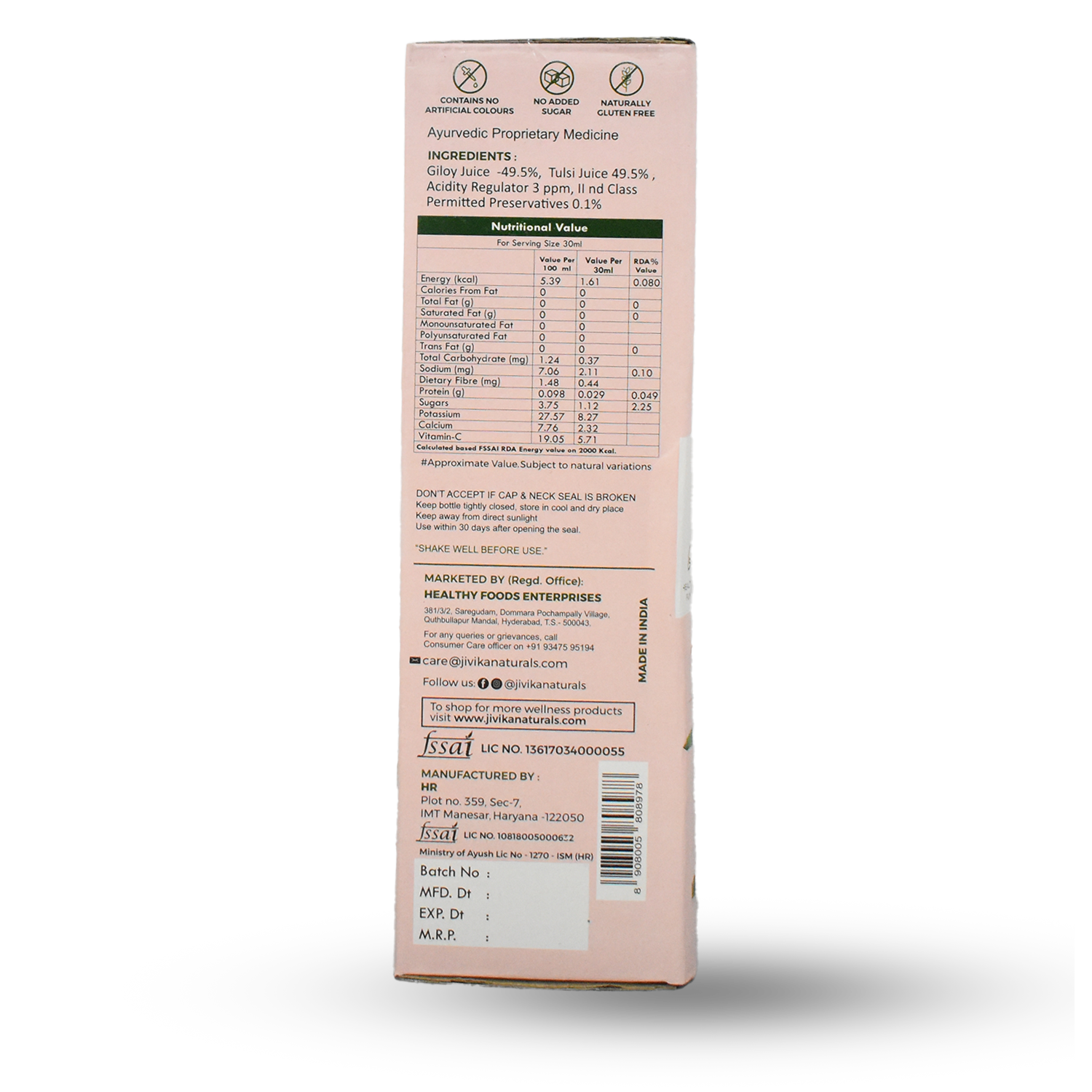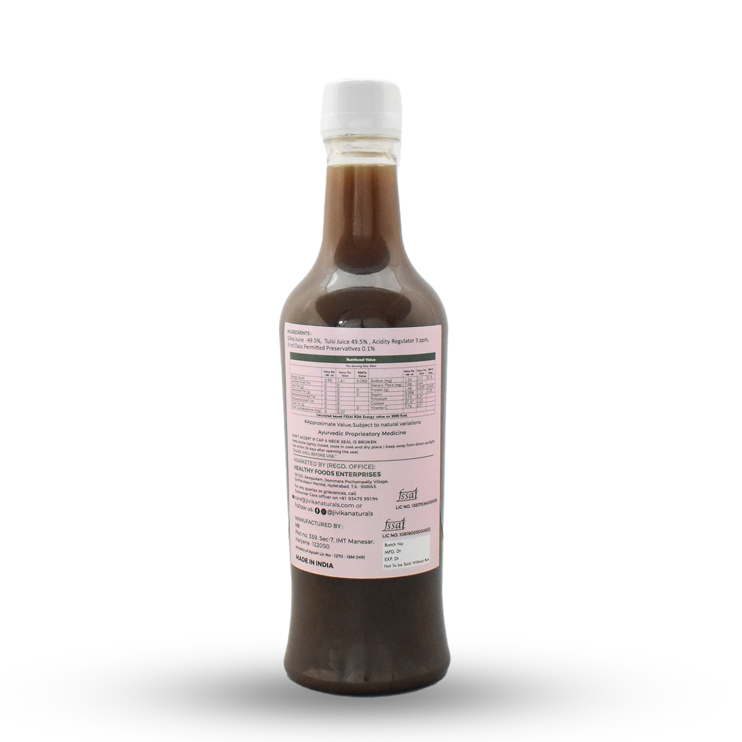 The perfect blend of Tulsi and Giloy is as refreshing as it is nourishing. Following the ancient principles of Ayurveda, Tulsi Giloy Juice can help enrich your quality of life by bringing a healthy balance to your Vata, Pitta and Kapha.