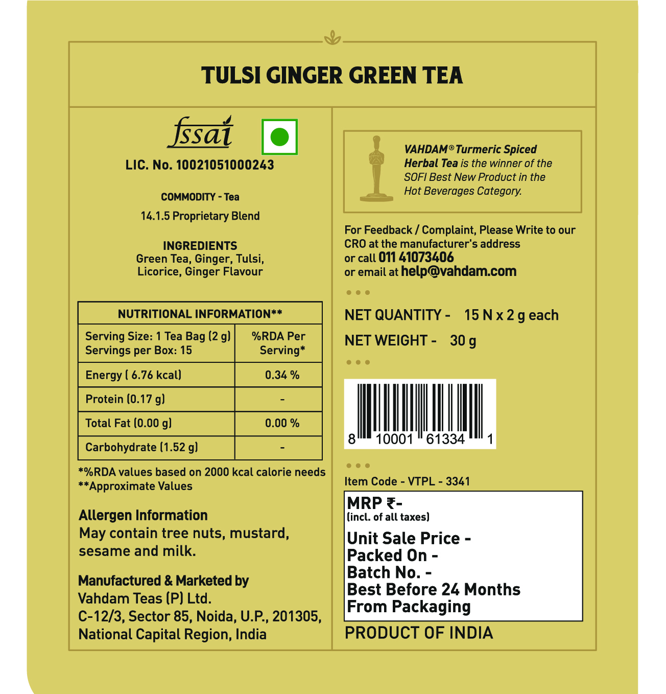 This detox green tea improves immunity, strengthens and nourishes your body. The cup has a pale yellow medium-bodied liquor that starts off with sweet and spicy notes of Tulsi. The middle is marked with spicy flavors of ginger that travel throughout the cup.