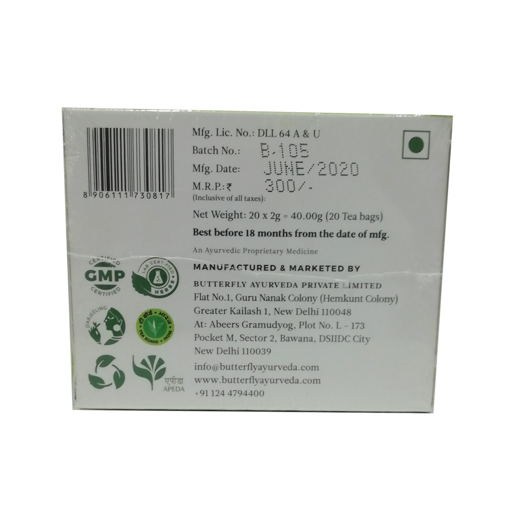 This product is a natural blend of green tea leaves sourced from Glenburn tea estate of Darjeeling and dried tulsi leaves. It helps build bodys stamina, immunity and has a rejuvenating effect. It helps pacify kapha and vata doshas , and is a rich source of antioxidants. It improves metabolism, while also flushing out toxins from the body and alleviates symptoms of cough and cold. Unsullied by any artificial flavors, colors, scents or extracts, it comes protected inside airtight aluminium foil, packaged in tastefully crafted cardboard pouches. It helps relieve physical and mental stress.