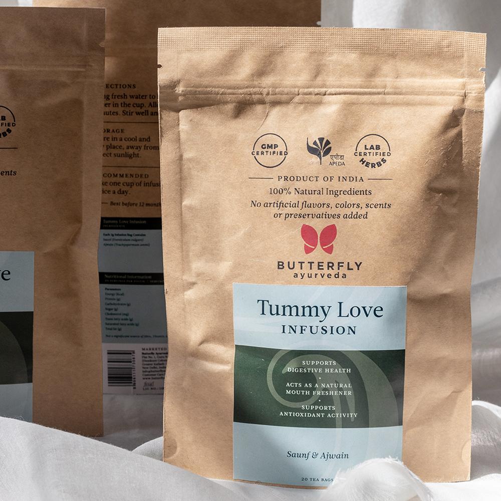 This product is caffeine-free, herbal infusion and rich in antioxidants. It helps maintain a healthy gut and support digestion. This infusion helps balance the Vata and Pitta doshas. It can also help in weight loss and alleviating gas, and acidity issues. It helps in freshening the mouth naturally. This is best had post meals, and leaves a refreshing taste in the mouth. Net weight: Pack of 20 x 2 g = 40 g (20 Tea Bags)
