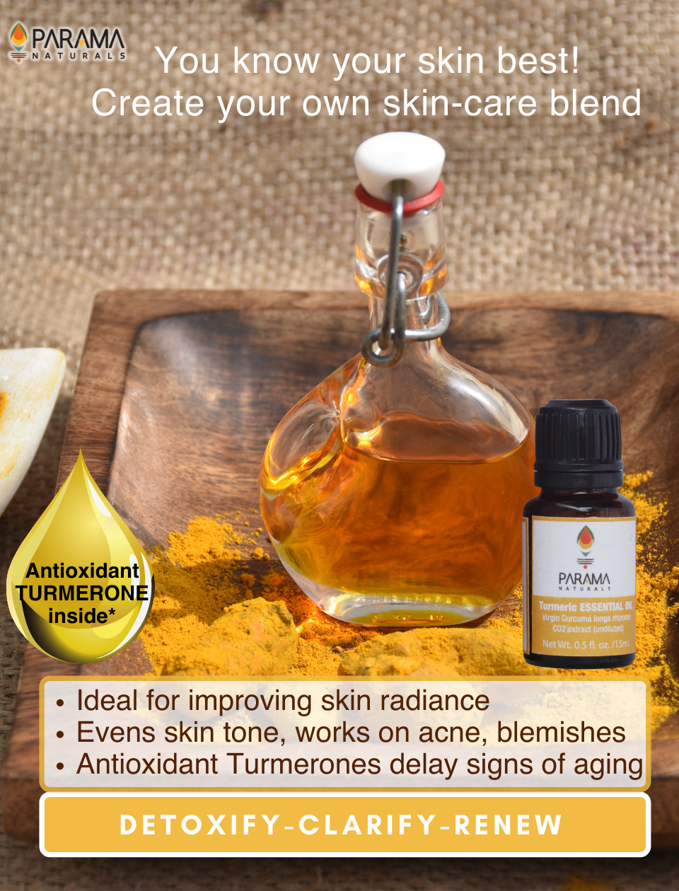 Turmeric is for beauty, skincare and wellness, is useful for its antioxidant, anti-inflammatory, antiseptic, antibacterial, antifungal, anti-microbial, anti-anxiety, soothing, detoxifying, deep cleansing, sun-screening and skin-clarifying properties. This oil is extracted from virgin rhizomes of curcuma longa using a solvent and chemical-free environmentally sustainable green process called supercritical CO2 extraction process. It is 100% pure, food-grade and safe for consumption internally and topically.