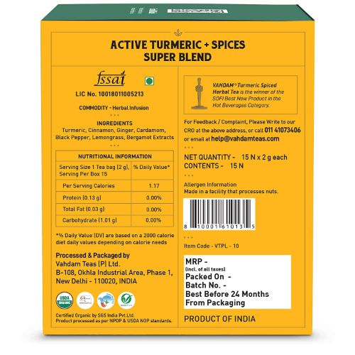 This product brings together the goodness of sun-dried turmeric with the warm flavors of freshly-ground cardamom, cloves, and black pepper. The magnificent citrusy undertones accentuate the warm notes of the spices.