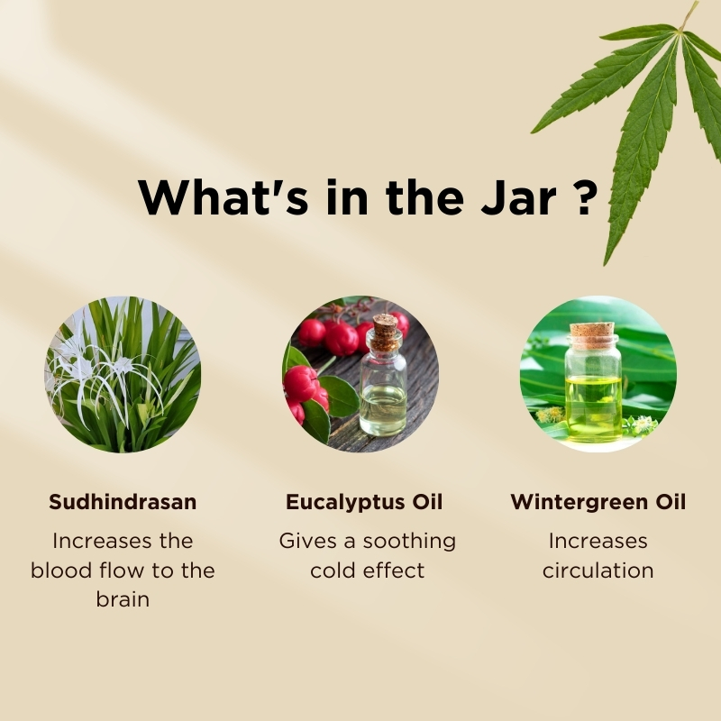 Kheonis fast-acting pain relief balm is enriched with Vijaya Leaf extract to provide instant relief from headaches, general muscular aches, and body pain. Vijaya Leaf combined with traditional ayurvedic oils provides relief from discomfort due to soft tissue injury and symptoms of common cold.