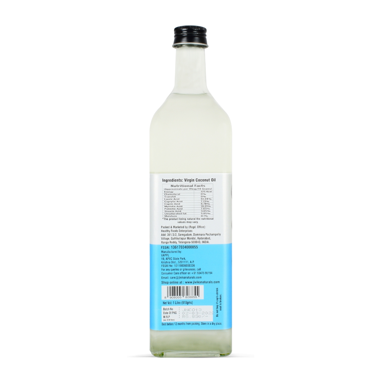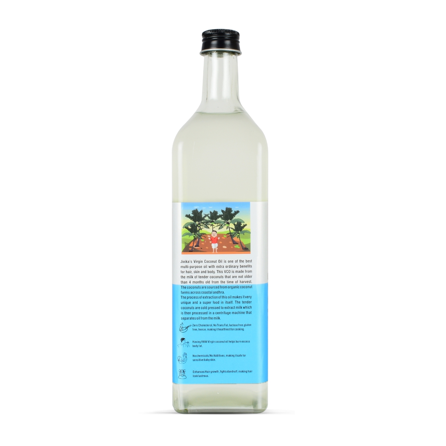 jivika naturals Virgin Coconut Oil Made From Coconut Milk - Cold Pressed (Glass Bottle) - 1 Litre
