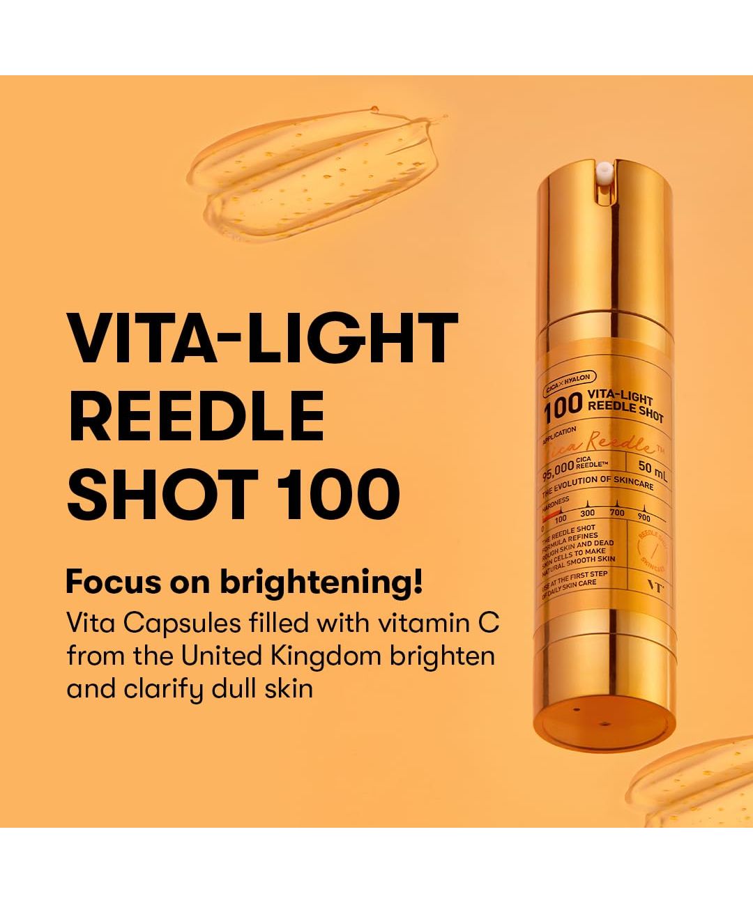 The VT Cosmetics Vita-Light Reedle Shot 100 is formulated to revitalize and brighten the skin. It combines Vitamin C derivatives to target dullness and promote a more even skin tone with the soothing properties of Cica extract. The "Reedle Shot" technology is designed to enhance the absorption of these key ingredients, helping to improve skin radiance and overall complexion health.
