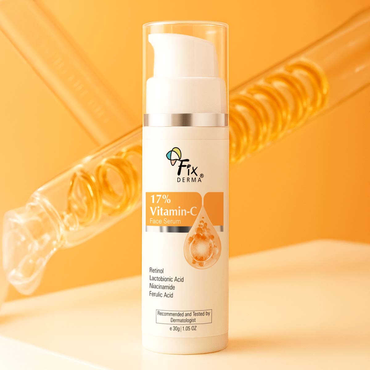 The stable vitamin c: this serum contains 17% ascorbyl methylsilanol pectinate, a stable and quick-absorbing form of vitamin c which means the serum will not lose its efficacy till the last drop. It is an antioxidant that strengthens the skin to better deal with various environmental stresses. It improves skins texture and appearance, giving a brightening effect.Enriched with actives: 17% vitamin c face serum is extremely potent with concentrations of niacinamide, ferulic acid, hydrolysed hyaluronic acid, lactobionic acid, and retinol that help skin stretch and flex and reduce skin wrinkles, scarring, and fine lines. This serum helps firm and tighten your skin and leave it brighter, smoother, plump, and glowing along with multiple anti-ageing benefits.