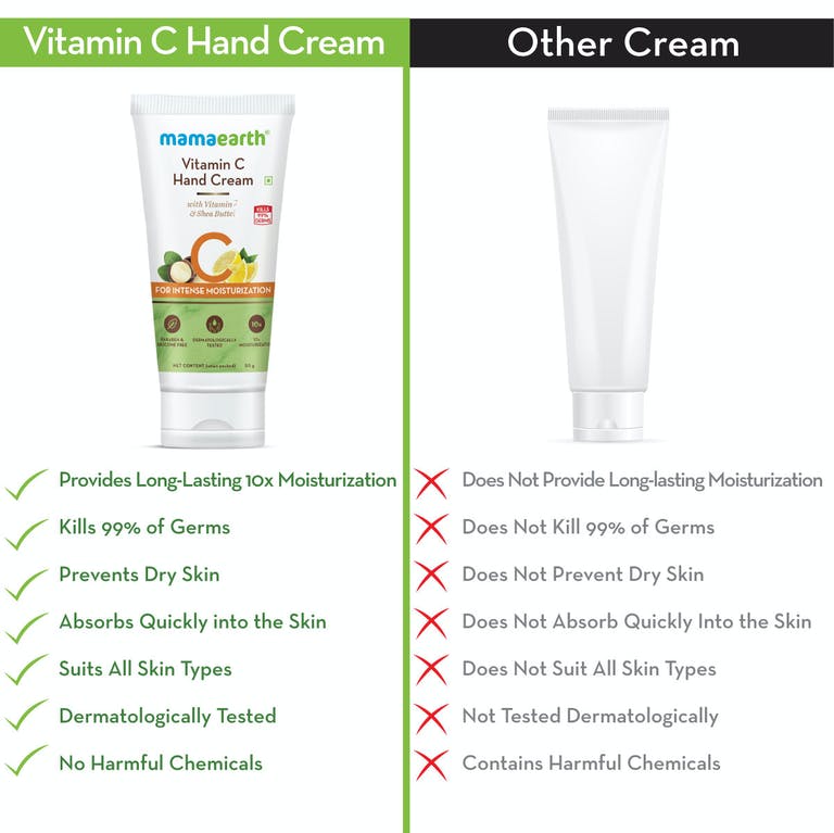 This product is crafted with radiance-boosting vitamin C and moisturizing shea butter. The hand cream will give you an added layer of protection because it's infused with germ-fighting ingredients that kill 99% of germs. Give your hands, 10x intense moisturization while also keeping them sanitized. It is suitable for all skin types and is free of parabens, silicones, sulphates, phthalates, and artificial colors. This Hand Cream is suitable for all skin types.