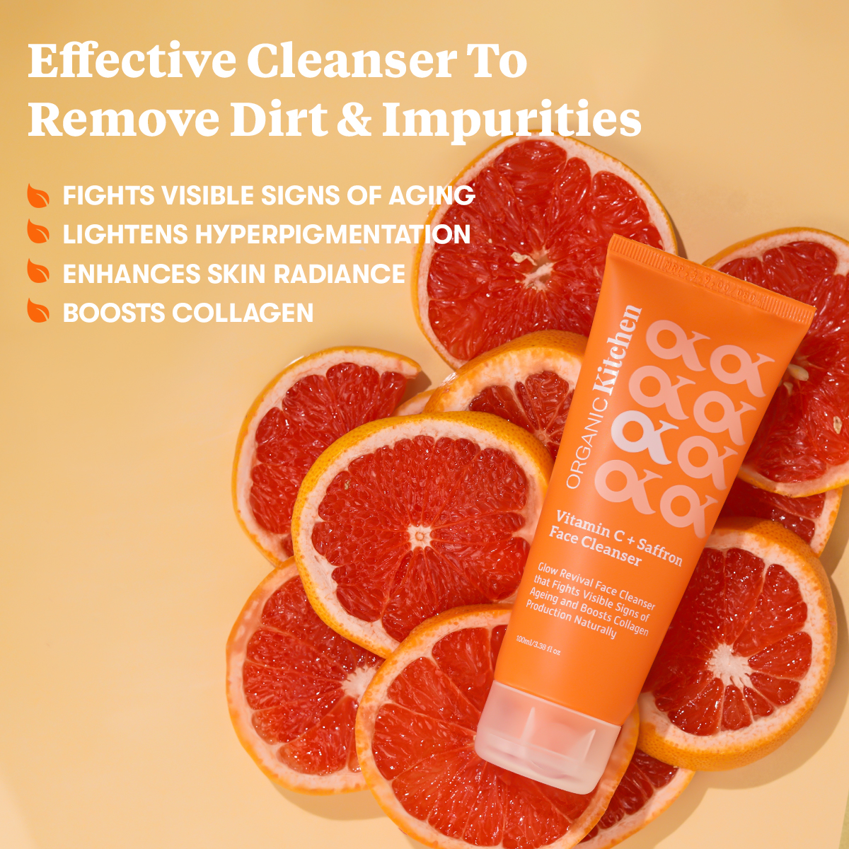 This Vitamin C+ Saffron Face Cleanser is an oil-free, super-refreshing cleanser that is crafted with turmeric, saffron, ginger, and Vitamin C. It helps prevent skin irritation and removes tan, exposing a bright, clear, and refreshed skin. Ginger maintains skins collagen and helps fight the signs of aging. Neem and turmeric extract aid in reducing acne to reveal an even-toned skin. Using this antioxidant-rich cleanser twice daily will get you smooth, moisturized, and nourished skin like no other!
