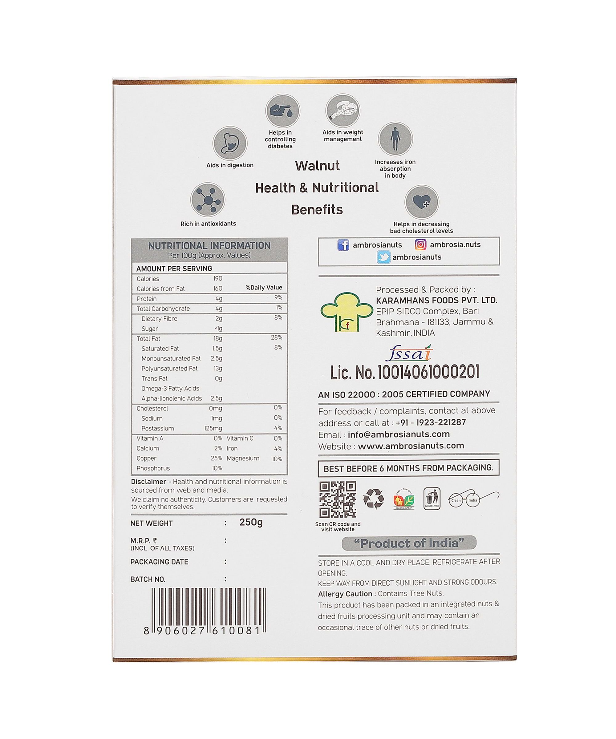 Introducing a premium nut offering from Kashmir in the nuts category, crafted to deliver a fresh, crunchy, and nutrient-rich snacking experience. Perfect for soaking overnight, sprinkling on salads, or adding to desserts, this product offers a rich, earthy flavor. Double-sorted, vacuum-packed, and cold-stored for freshness, these light brown walnut halves are hygienically packed in an FSSAI-approved facility, ensuring quality. Rich in Omega-3s, proteins, and fiber, they support heart health and appetite control, catering to families, fitness enthusiasts, and health-conscious snackers seeking a wholesome treat.