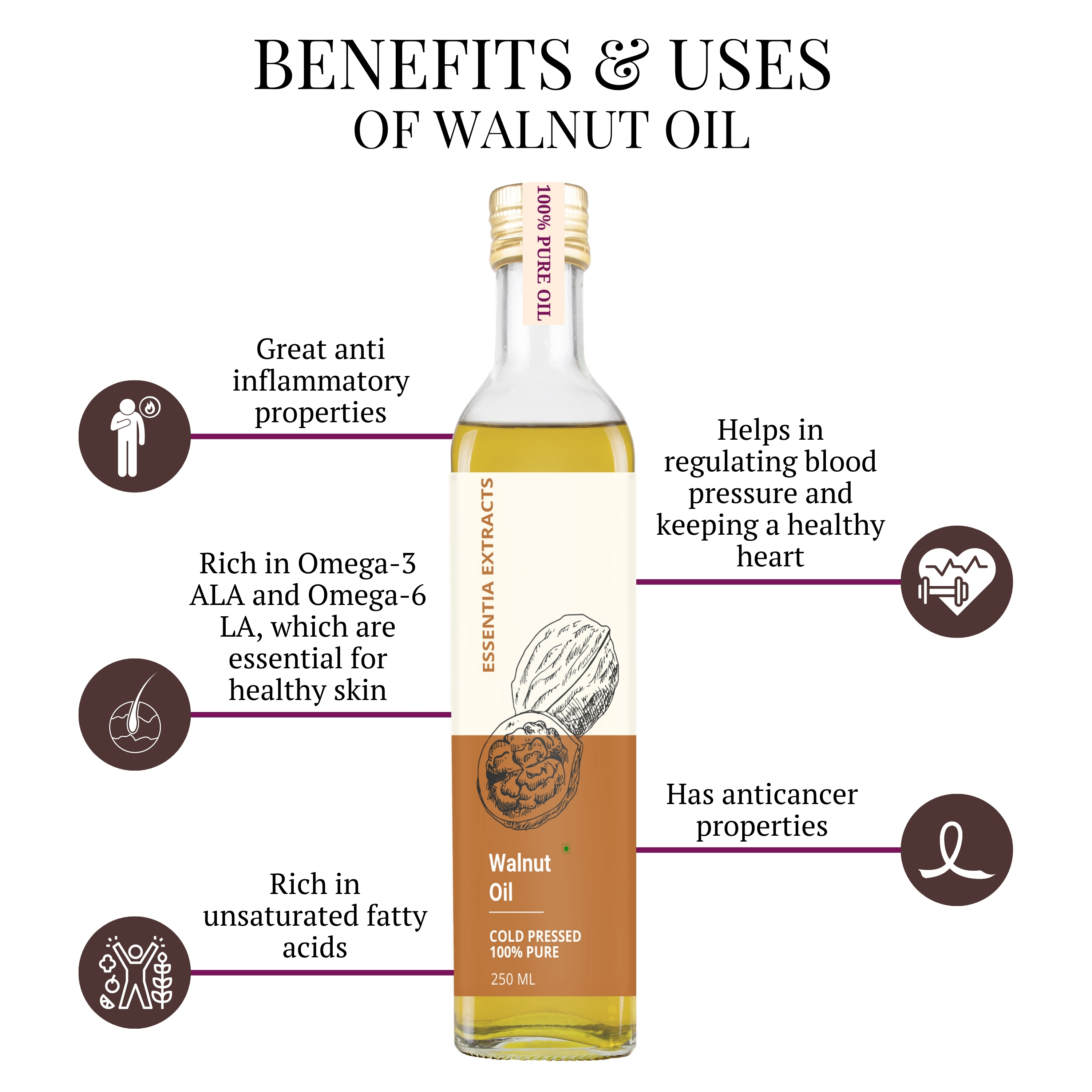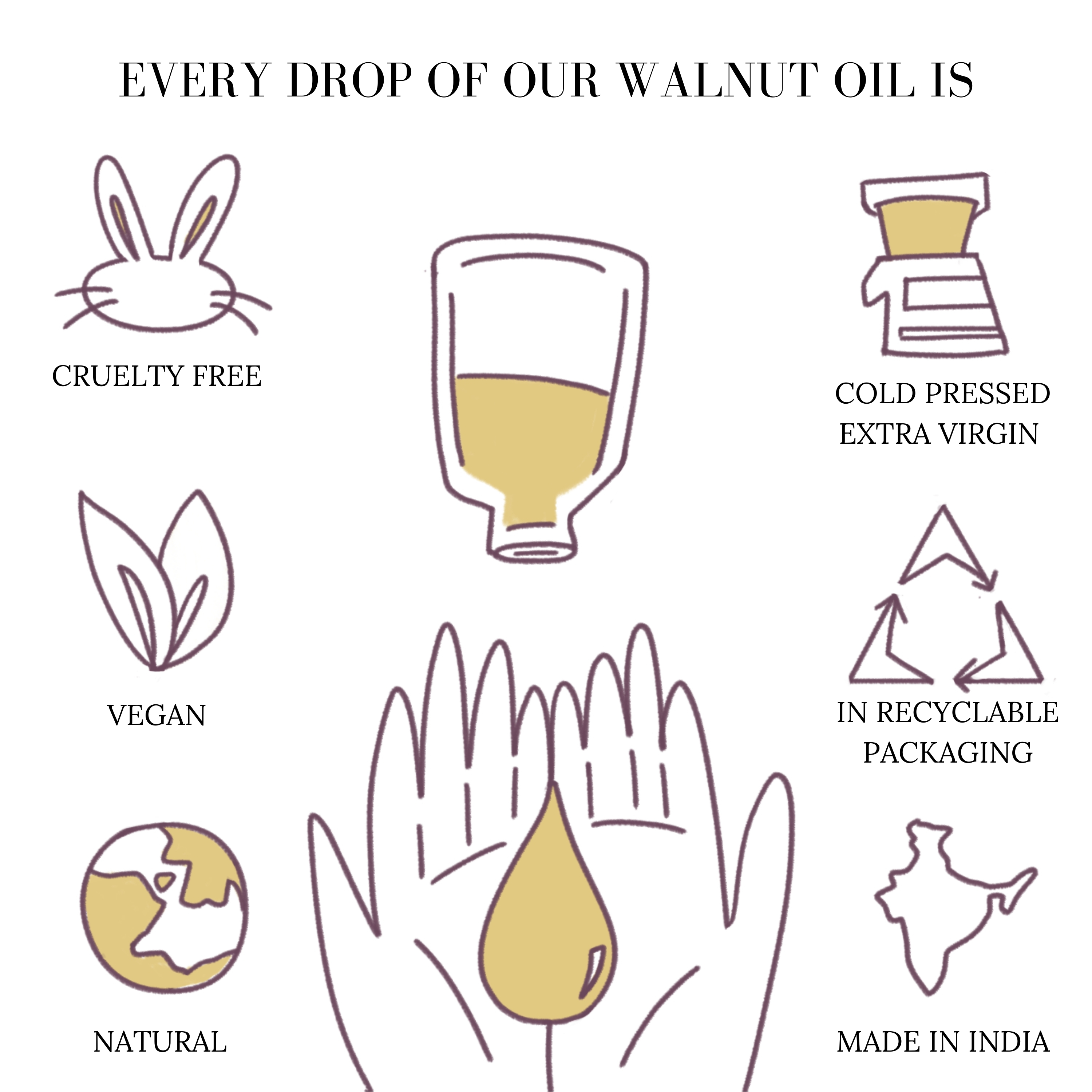 This product is extracted from walnuts sourced directly from Kashmir, contains significant antioxidants and is recommended for scalp nourishment. Enriched with Omega-3 fatty acids, heavier than our other oils and has a distinctive, wafting aroma of walnuts. This prodcuct 100% pure, unrefined, and free from any adulterants which makes it one of the best walnut based product for both consumption and topical uses, extracted through a cold-press technique which keeps all the nutrients intact.