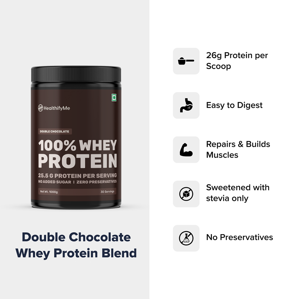 Fuel your health journey with HealthifyMe Whey Protein. It acts as a reliable partner that supports workouts, aids recovery, and promotes strength & vitality. Think of it as a powerhouse ingredient in your fitness regimen, fuelling your health & helping you thrive.