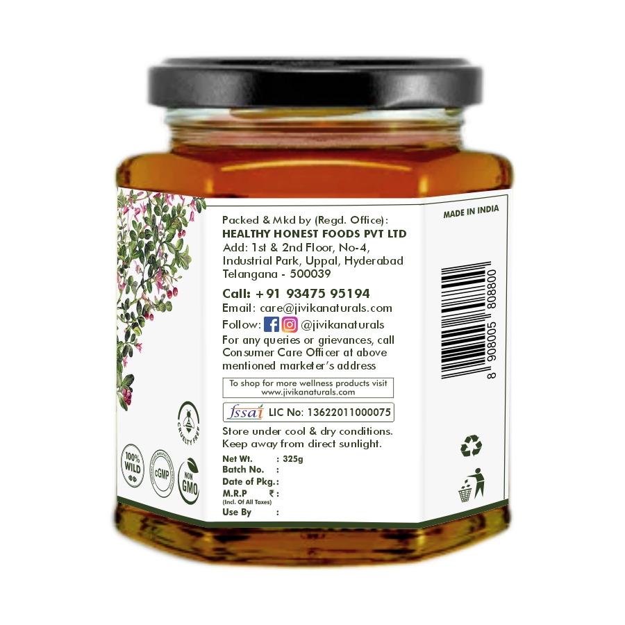 Wild, Raw, and Pure. Our Wild Berry Honey is the result of free feeding bees that live among Berry bushes in Hanumangarh, Rajasthan. The magic of this great land is resurgent through each spoonful of syrupy goodness. Each drop of our Wild Berry Honey is bursting with all the flavour and energy of Wild Forest Berries. Wild Berry Honey makes for a complex and luxurious sweetener to elevate your desserts to new levels.