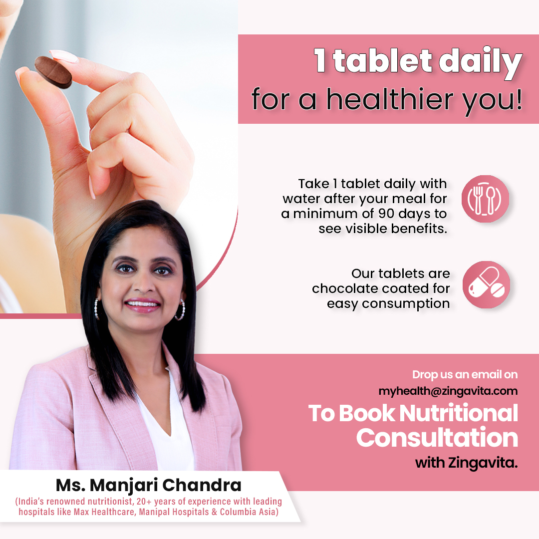 Chores, careers, family and life itself. So much to juggle that you always end up putting yourself last. The go-getter in you deserves all the nourishment you can get. So make your wellness a daily habit with zingavita multivitamins that is a SUPER blend of 45 vitamins, minerals, calcium, and herbs, formulated specially for women to help fill in nutritional gaps and support healthy, active lifestyle and pursue good health without compromise NUTRIENTS FROM A TO Z(inc): The power-packed performance of 45 herbs, vitamins, minerals & calcium provides you all the nourishment you need. Start your day strong with multivitamins that provides overall nourishment, boost your immunity, improve stamina, support healthier bones & promote glowing skin